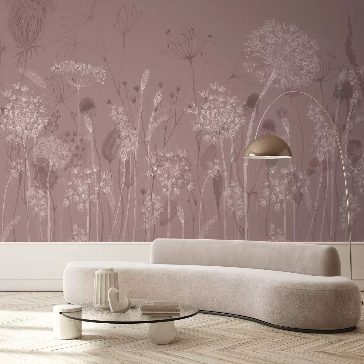 Fototapety Vzdušné púpavy a divoké kvety v akvarelovom štýle v ružových tónoch Nr. w08637v1