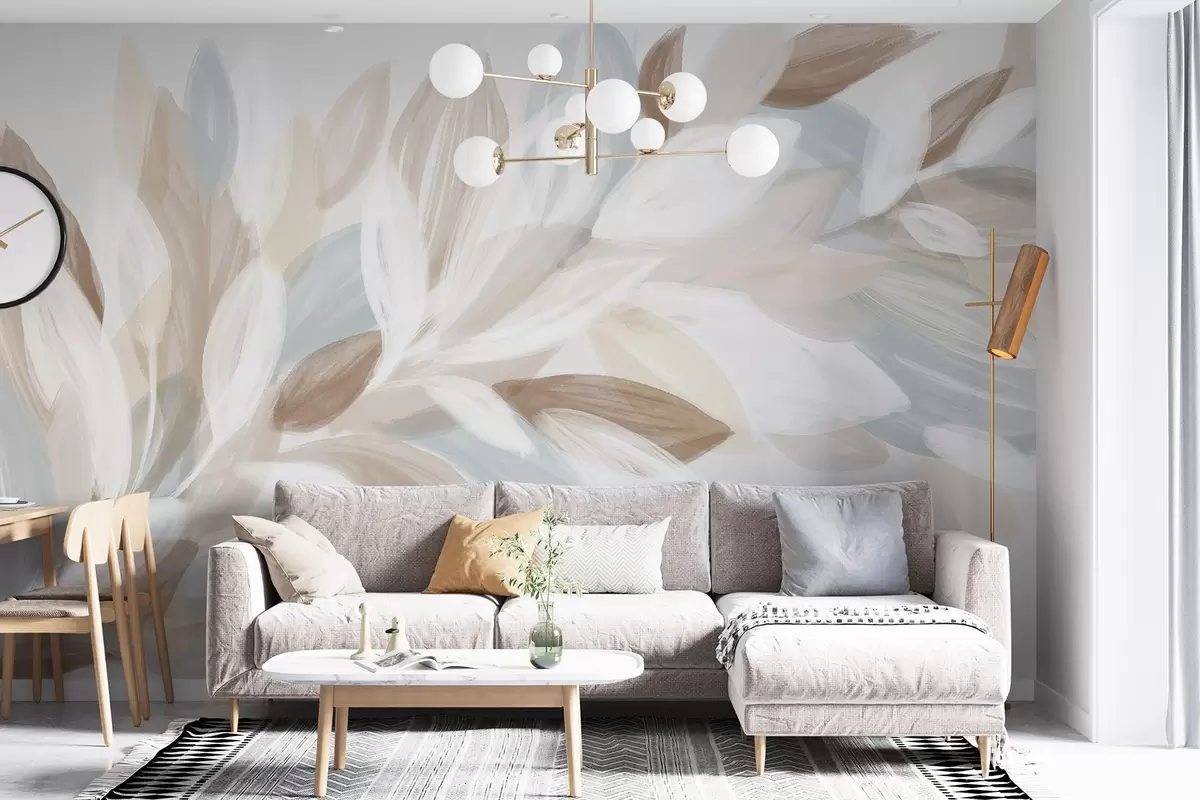 Fototapety Jemné pastelové listy v odtieňoch bielej, béžovej a svetlomodrej farby vytvárajú jemnú a éterickú kompozíciu Nr. w08649