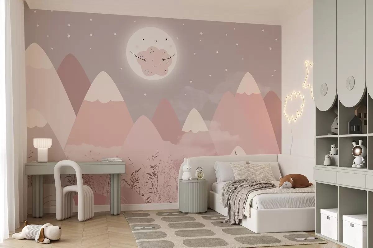 Fototapety Detské hory s roztomilým mesiacom a rastlinami na dne Nr. w08659