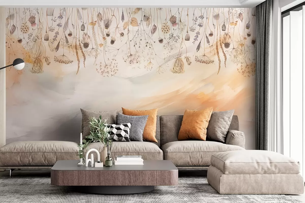 Fototapety Divoké kvety v akvarelovom štýle v pastelových tónoch na pozadí ťahu štetcom Nr. w08681