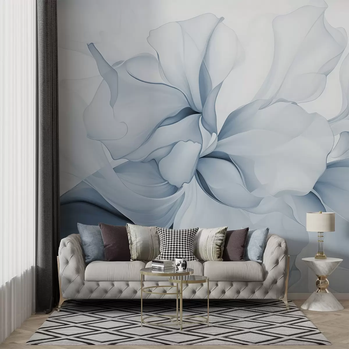 Fototapety Plynúce abstraktné kvetinové lístky priesvitných a vrstvených tvarov v pastelových farbách, v modrých odtieňoch w08701v2