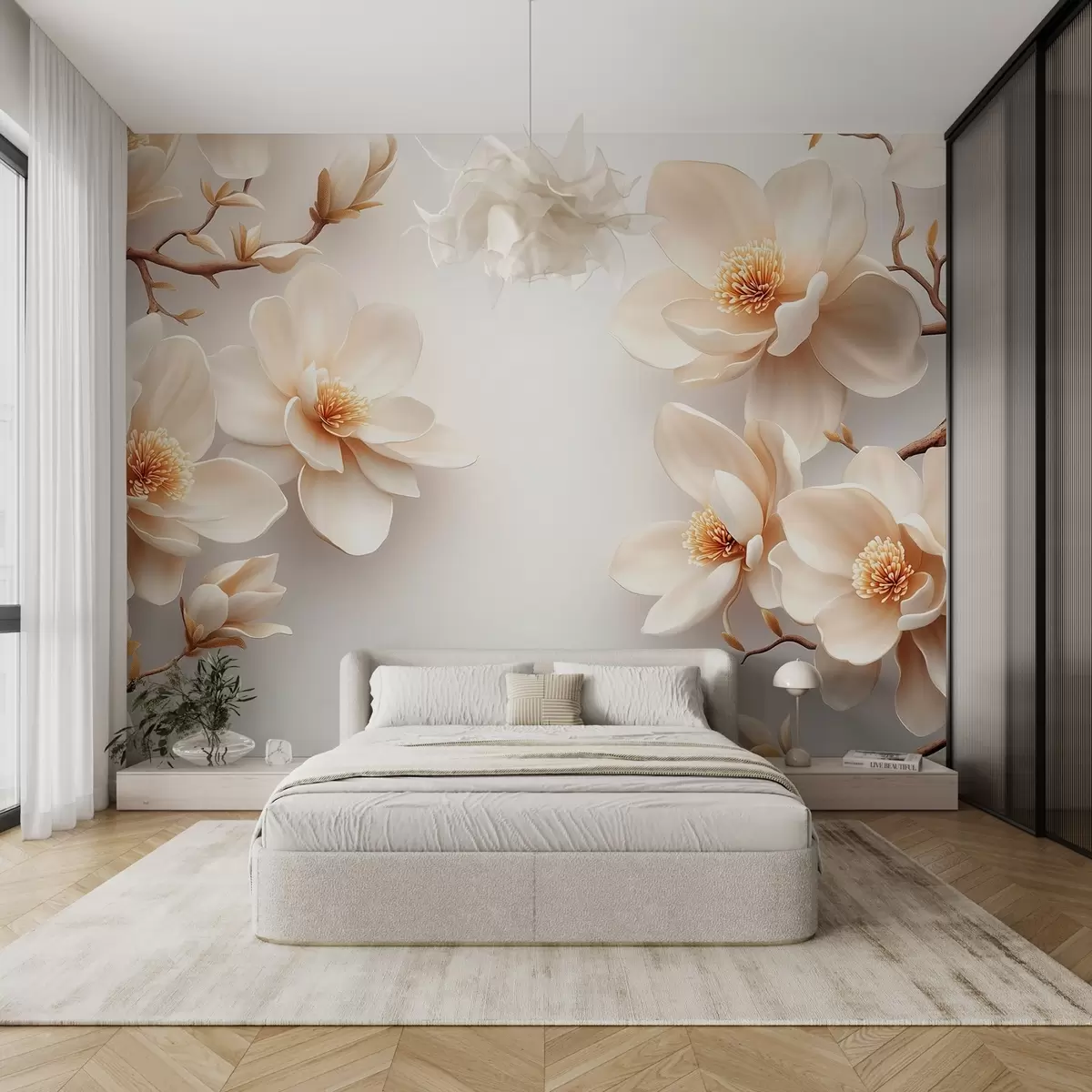 Fototapety Krásne kvitnúce krémové kvety magnólie na bielom pozadí Nr. w08704