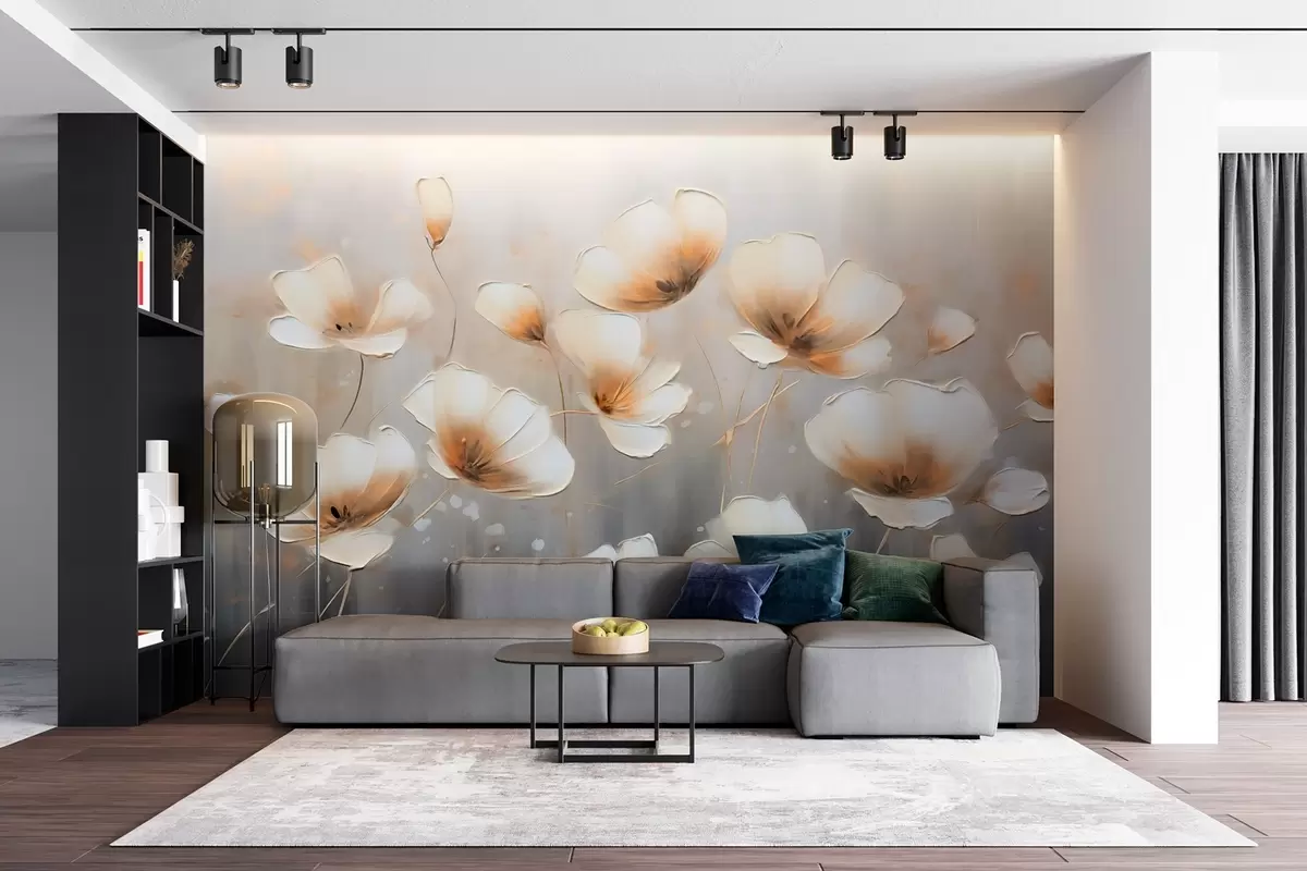 Fototapety Elegantné kvety s jemnými, mäkkými okvetnými lístkami v béžovomodrých odtieňoch Nr. w08746v1