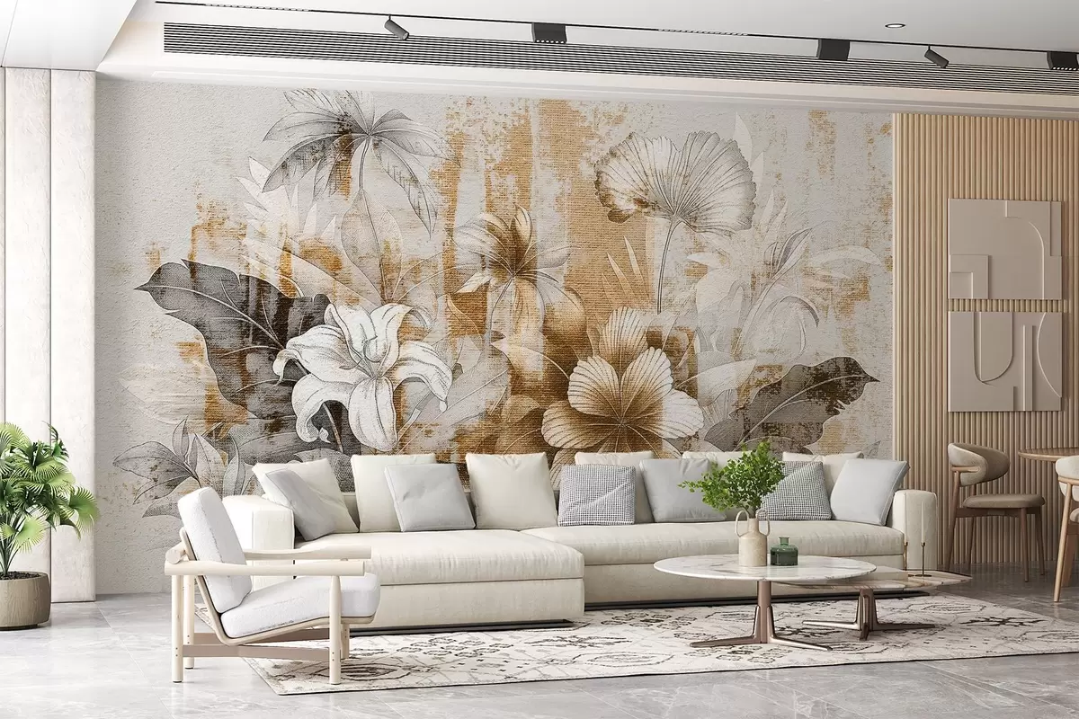 Fototapety Vintage dizajn s exotickými kvetmi a rastlinami Nr. w08767
