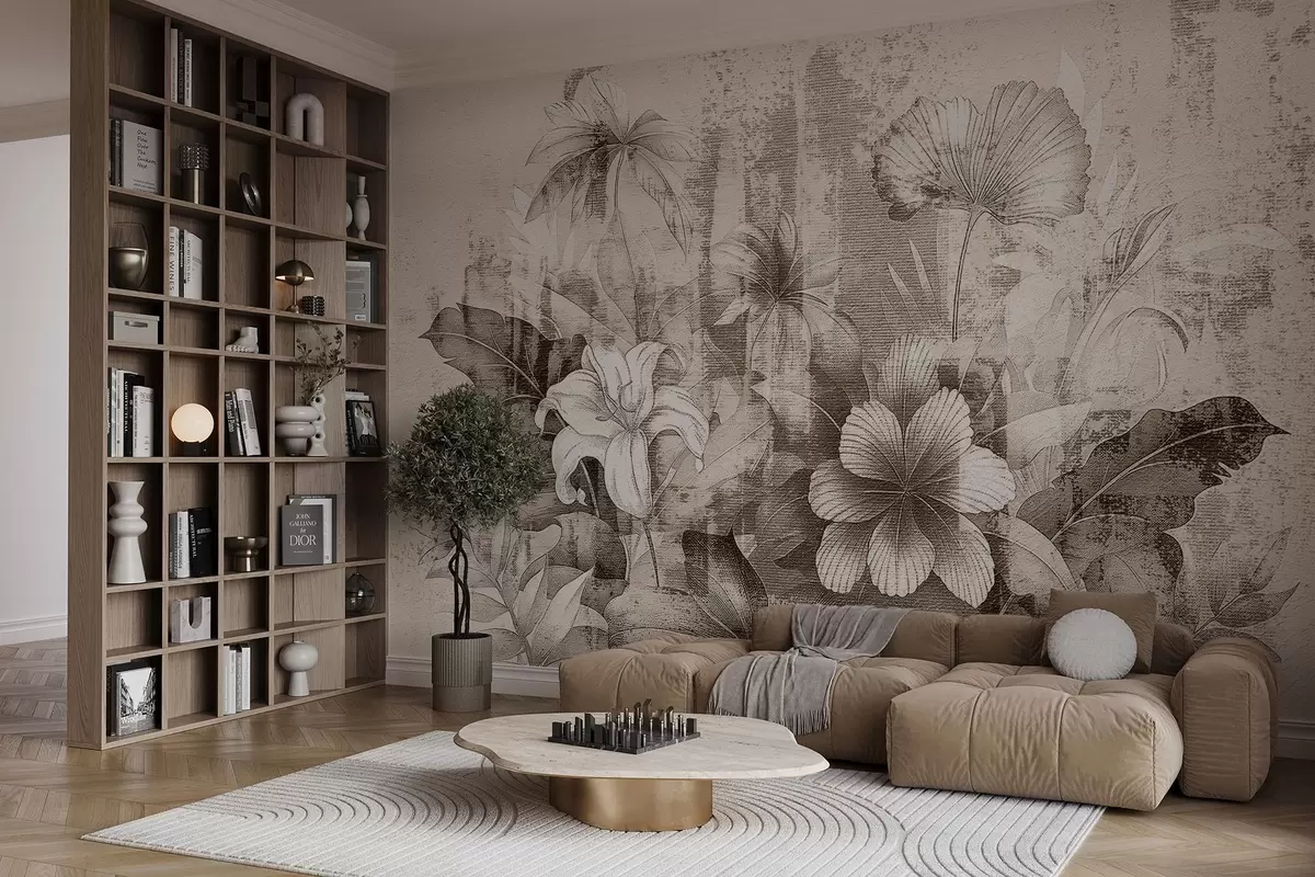 Fototapety Vintage dizajn s exotickými kvetmi a rastlinami Nr. w08767v2