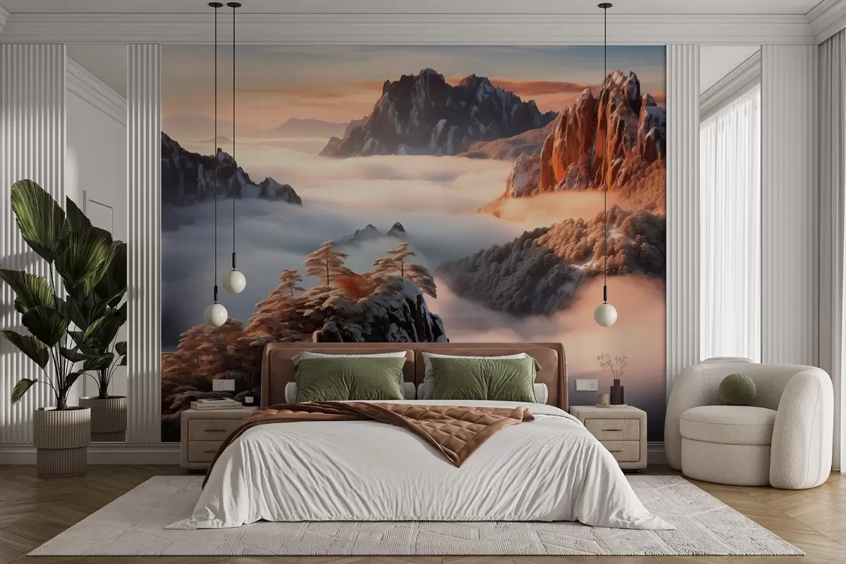 Fototapety Očarujúca horská krajina s hmlou a stromami Nr. w08807