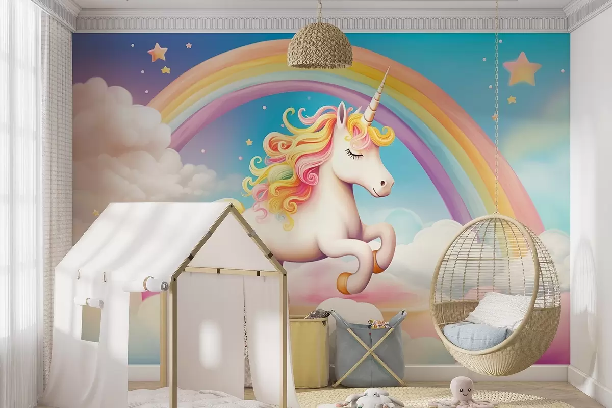 Fototapety Jednorožec s dúhou, mrakmi a hviezdnou oblohou Nr. w08820