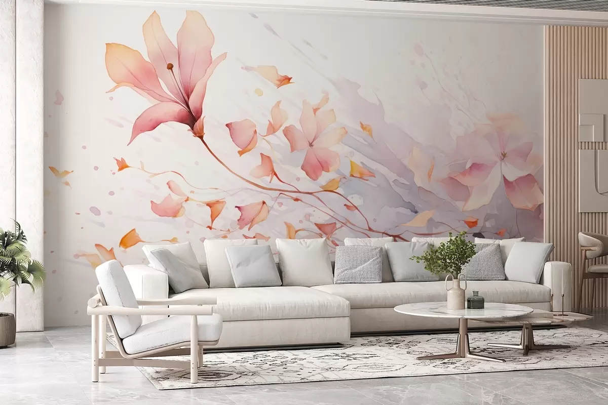 Fototapety Kvetina s padajúcimi okvetnými lístkami poletujúcimi vo vetre v akvarelovom štýle Nr. w08821