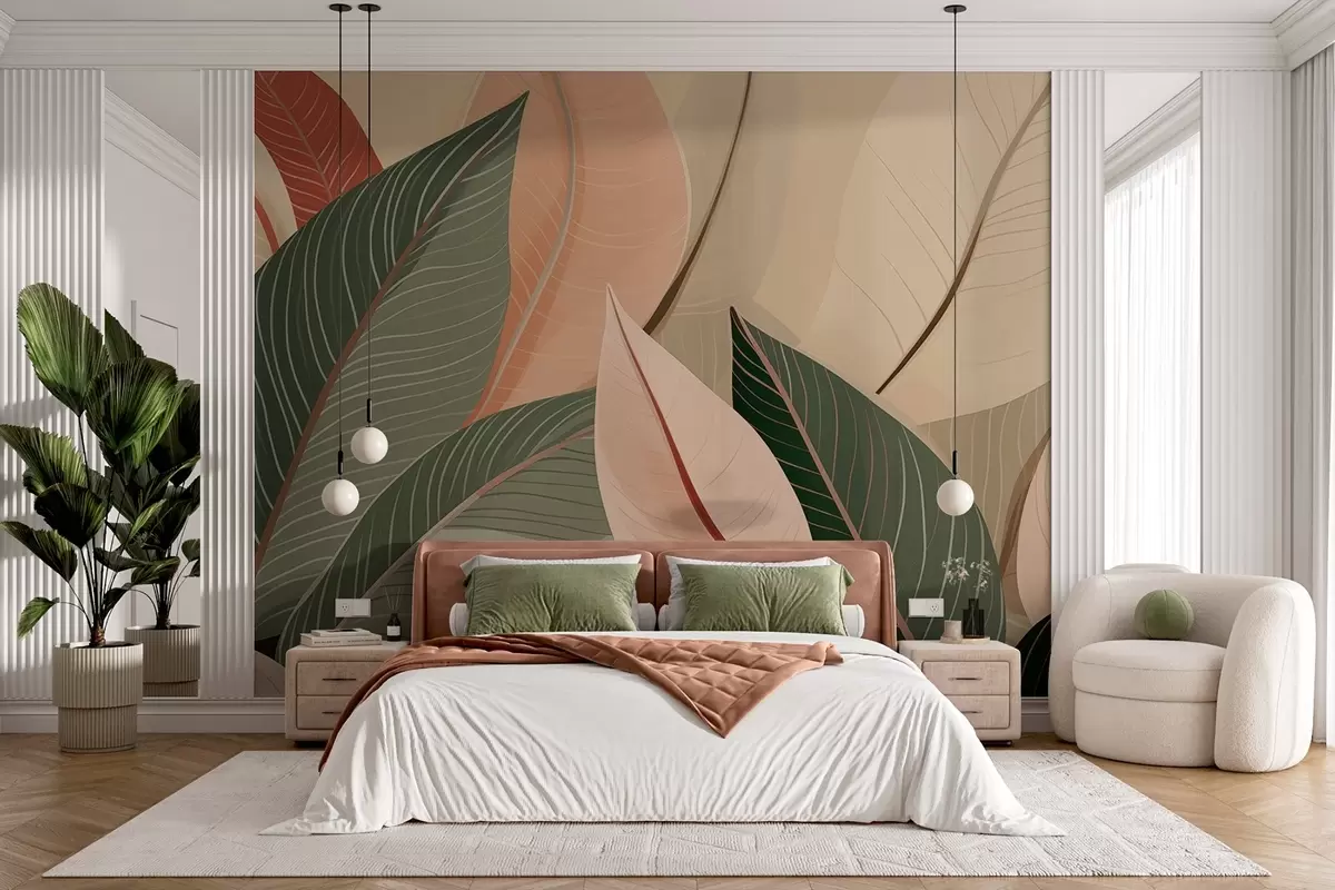 Fototapety Detailný záber na listy v olivovo zelenej a ružovo-krémovej farbe Nr. w08944