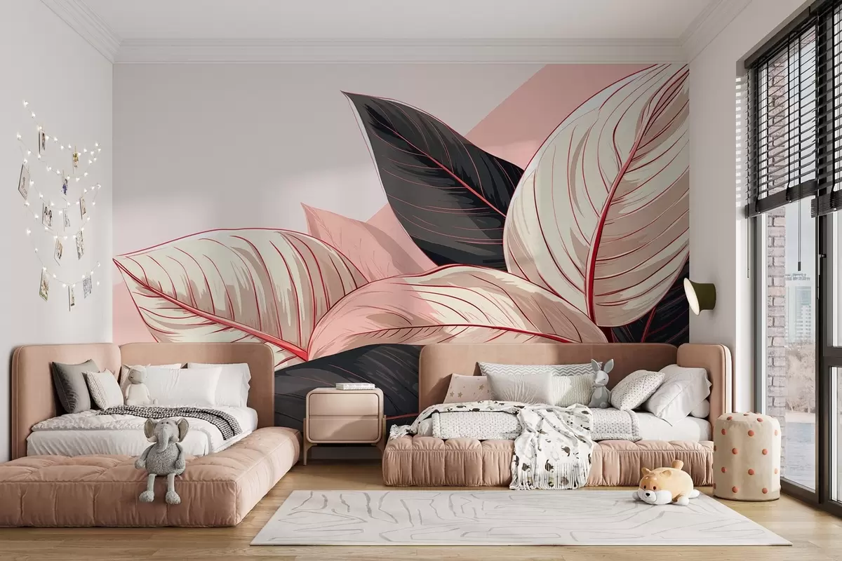 Fototapety Ružovo-šedé veľké tropické listy s ružovým fragmentom Nr. w08970v1