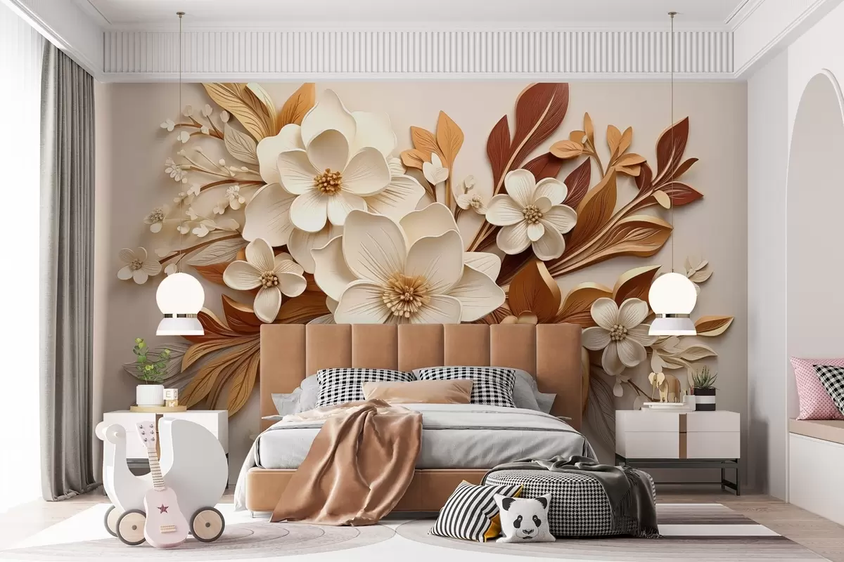 Fototapety 3D kvety s listami v štýle origami v béžových tónoch Nr. w08984