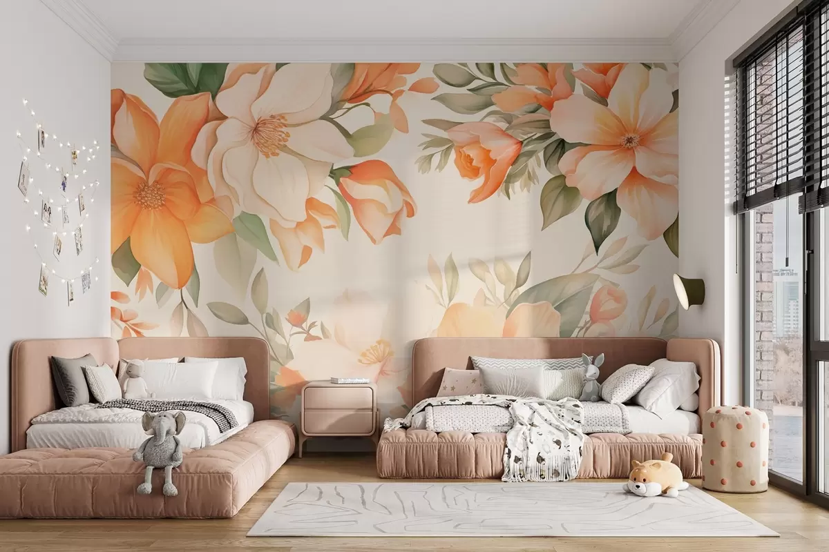 Fototapety Veľké oranžové kvety v akvarelovom štýle Nr. w09023