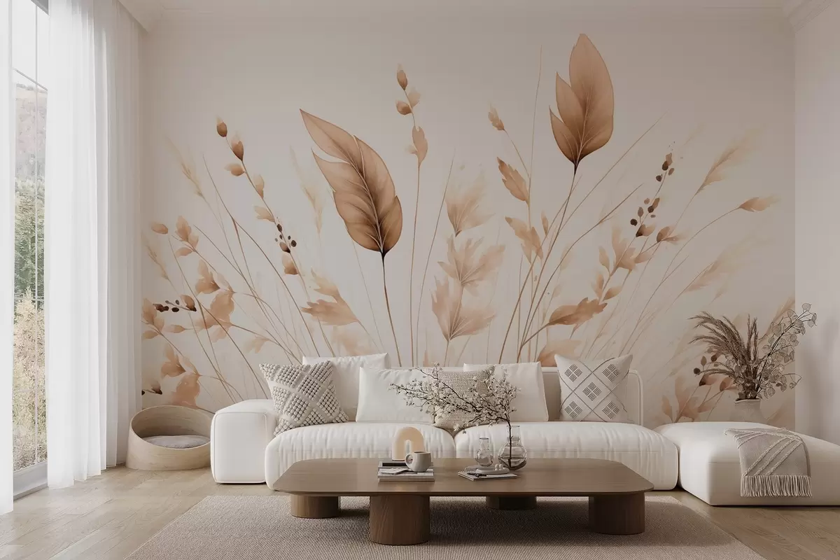 Fototapety Tanec vzdušných suchých tráv vo vetre v pokojných béžových farbách Nr. w09045