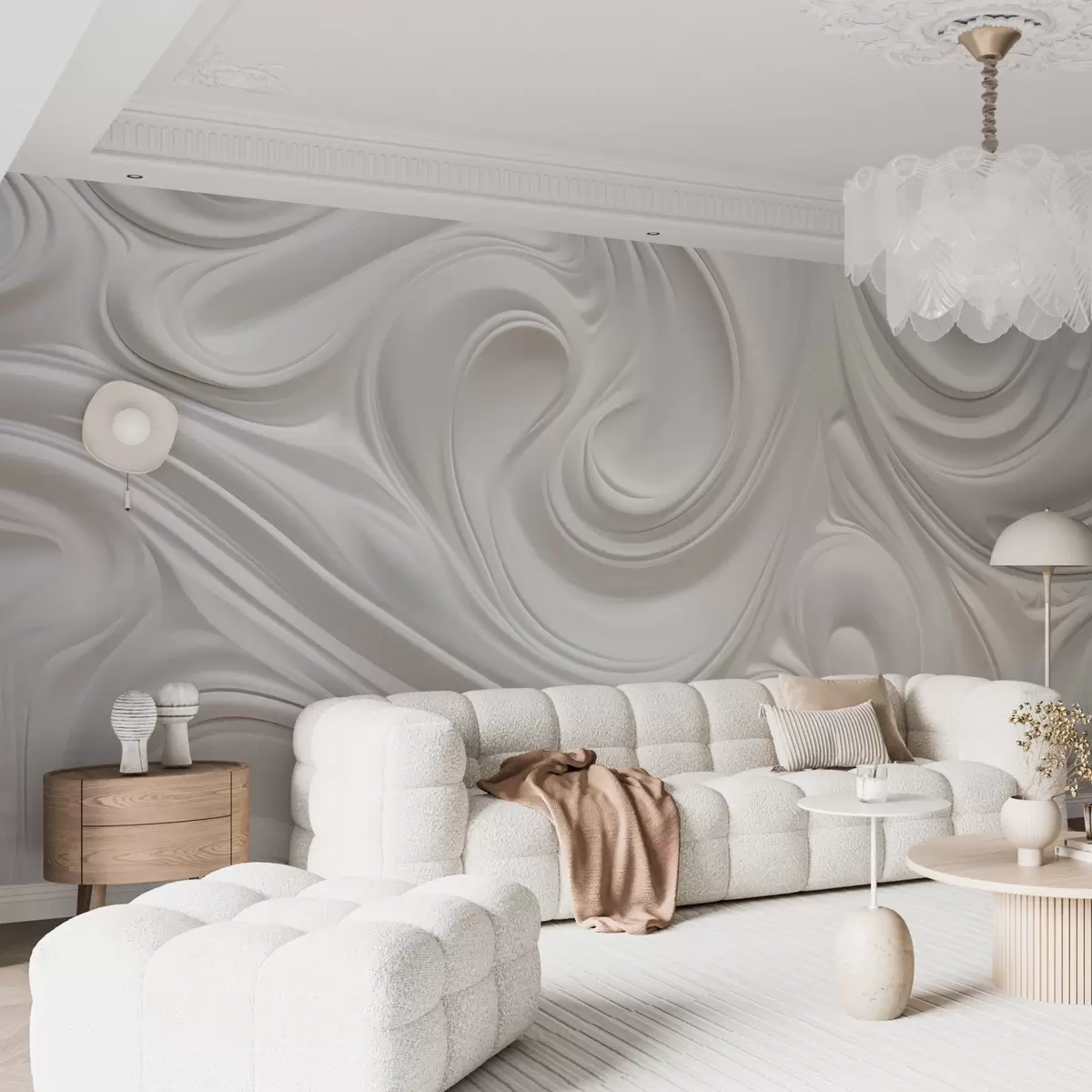 Fototapety Biele abstraktné moderné umenie s tekutými vírami a vlnami, hladká štruktúra, elegantný dizajn, minimalistická estetika Nr. w09059
