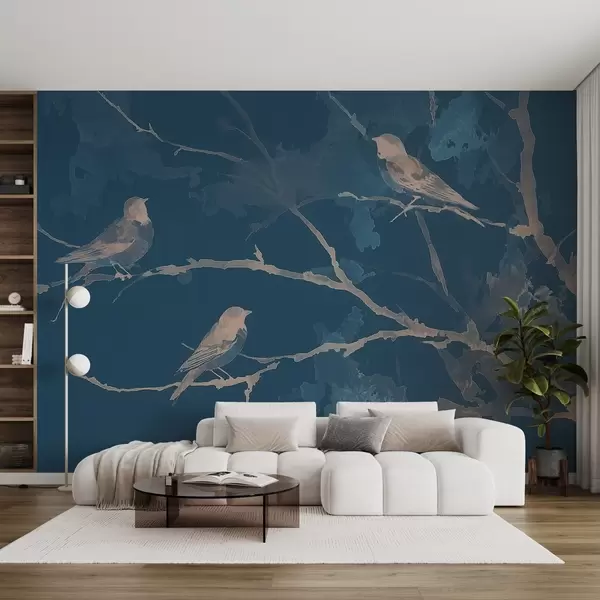 Fototapety Vtáky na konároch stromov v akvarelovom štýle Nr. w09064v1