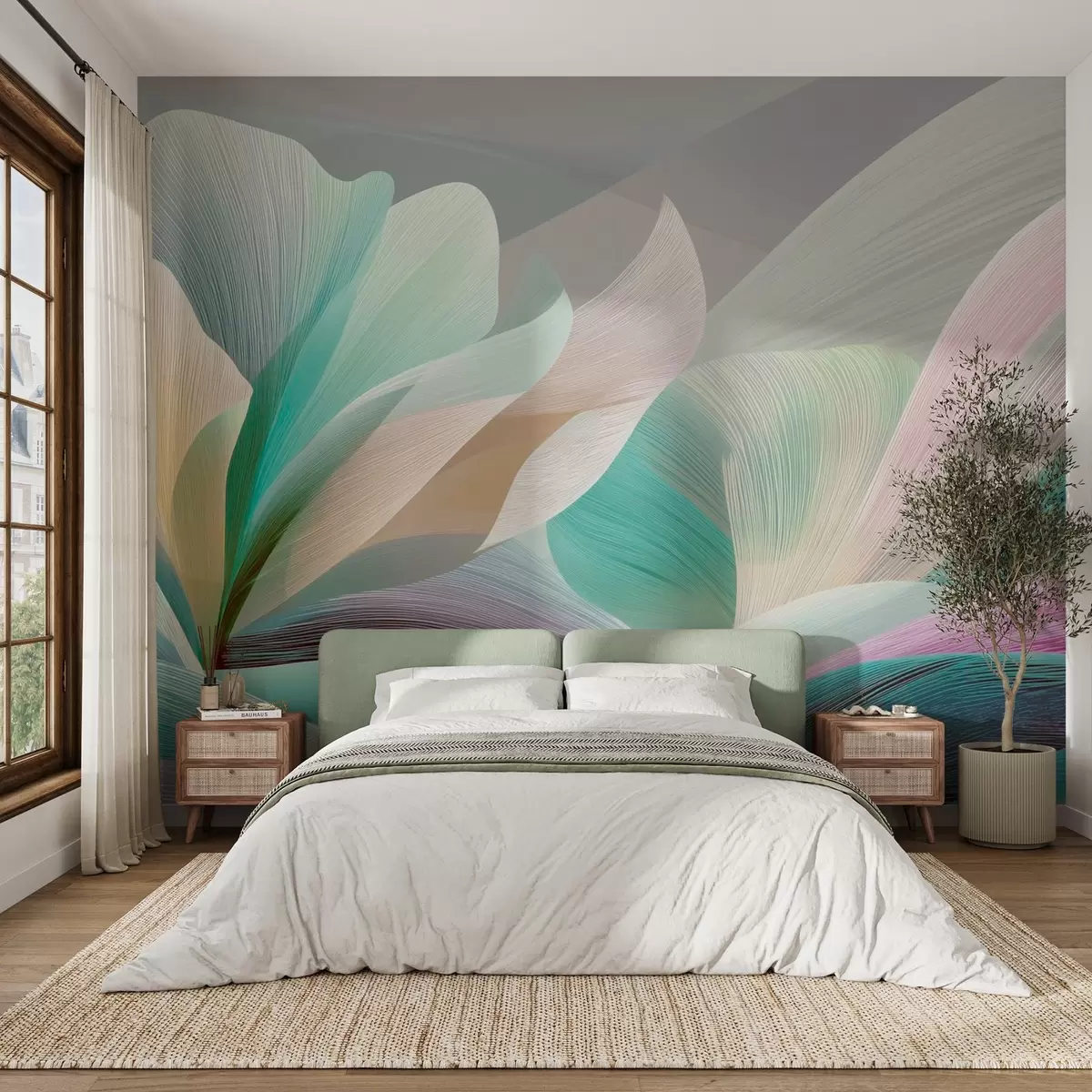 Fototapety Elegantná abstrakcia s hladkými krivkami pripomínajúcimi kvet a vlny Nr. w09075