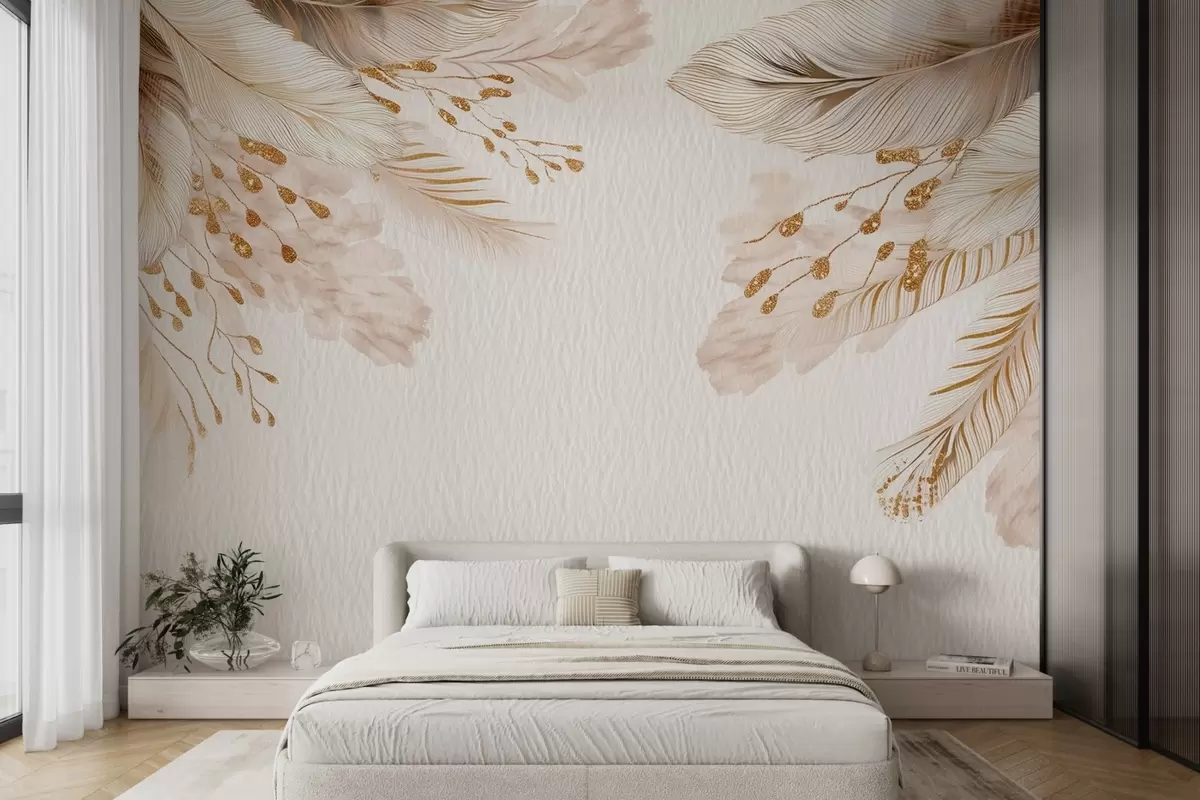Fototapety Pampová tráva a perie v akvarelovom štýle v béžovej a bielej farbe na papieri Nr. w09079