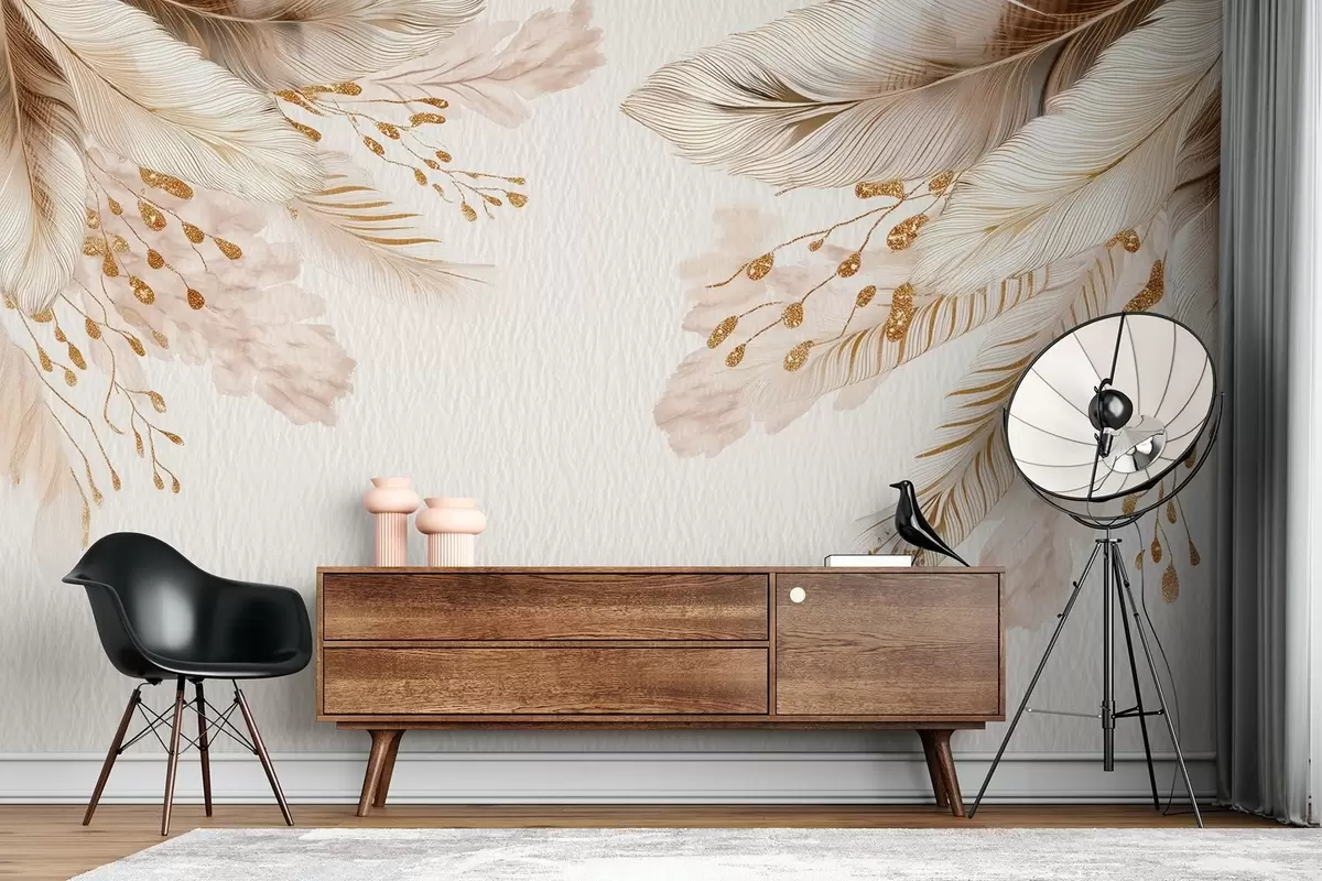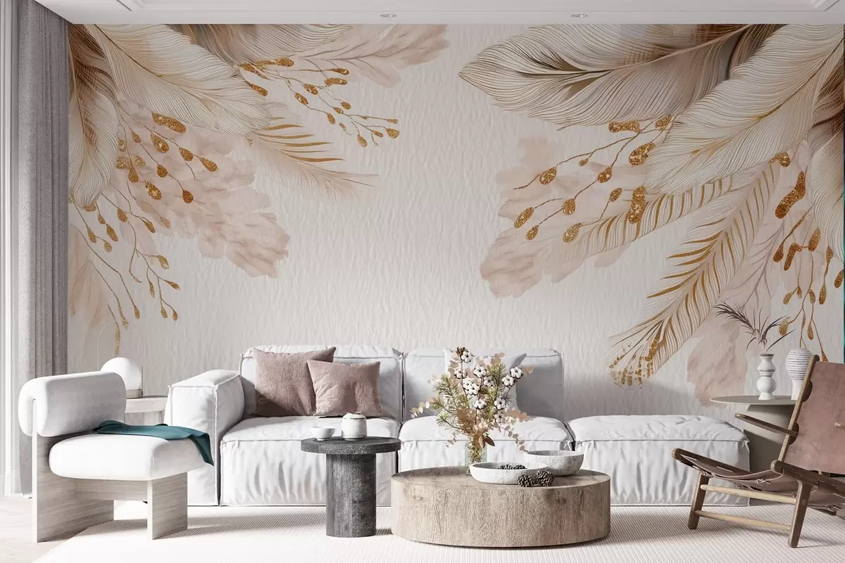 Fototapety Pampová tráva a perie v akvarelovom štýle v béžovej a bielej farbe na papieri Nr. w09079