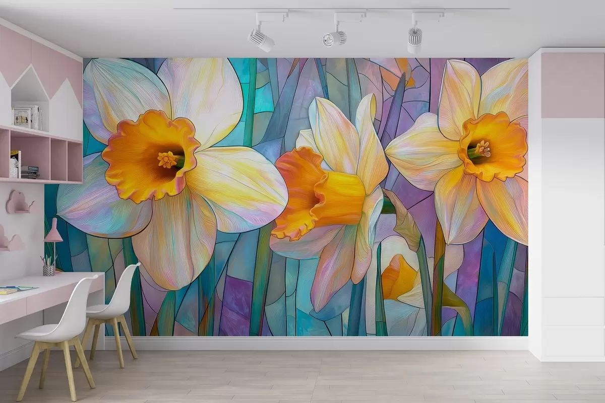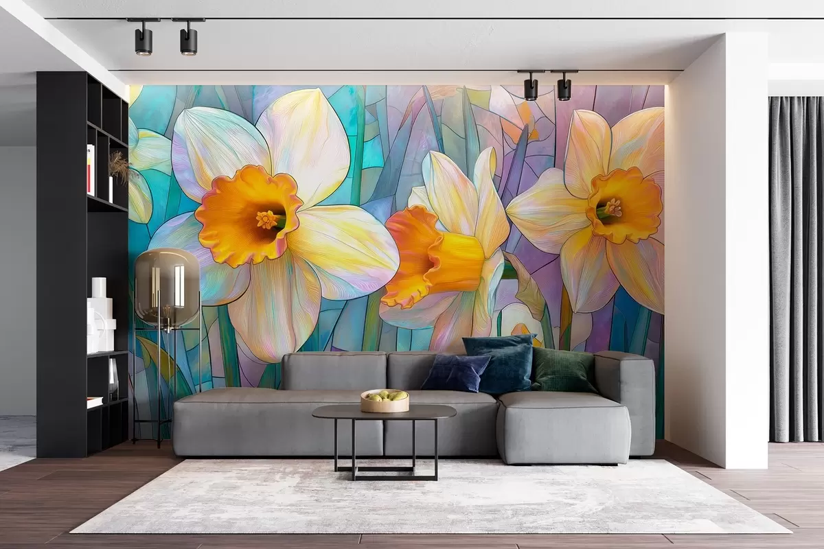 Fototapety Farebné narcisy na modrofialovom vitrážovom pozadí Nr. w09092