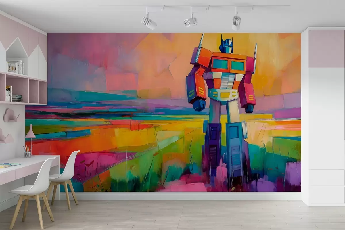 Fototapety Robot na pozadí svetlej abstraktnej krajiny v štýle olejomaľby Nr. w09096