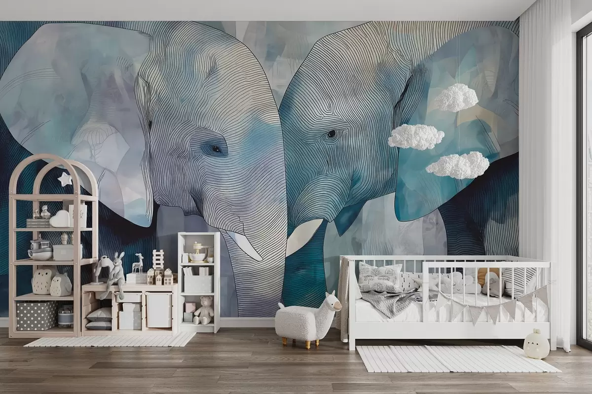 Fototapety Roztomilé modré slony v akvarelovom štýle Nr. w09098
