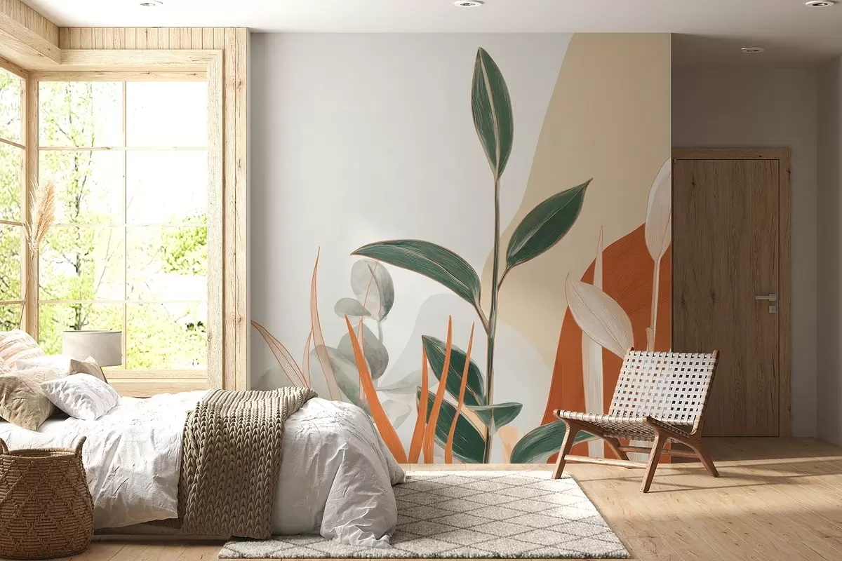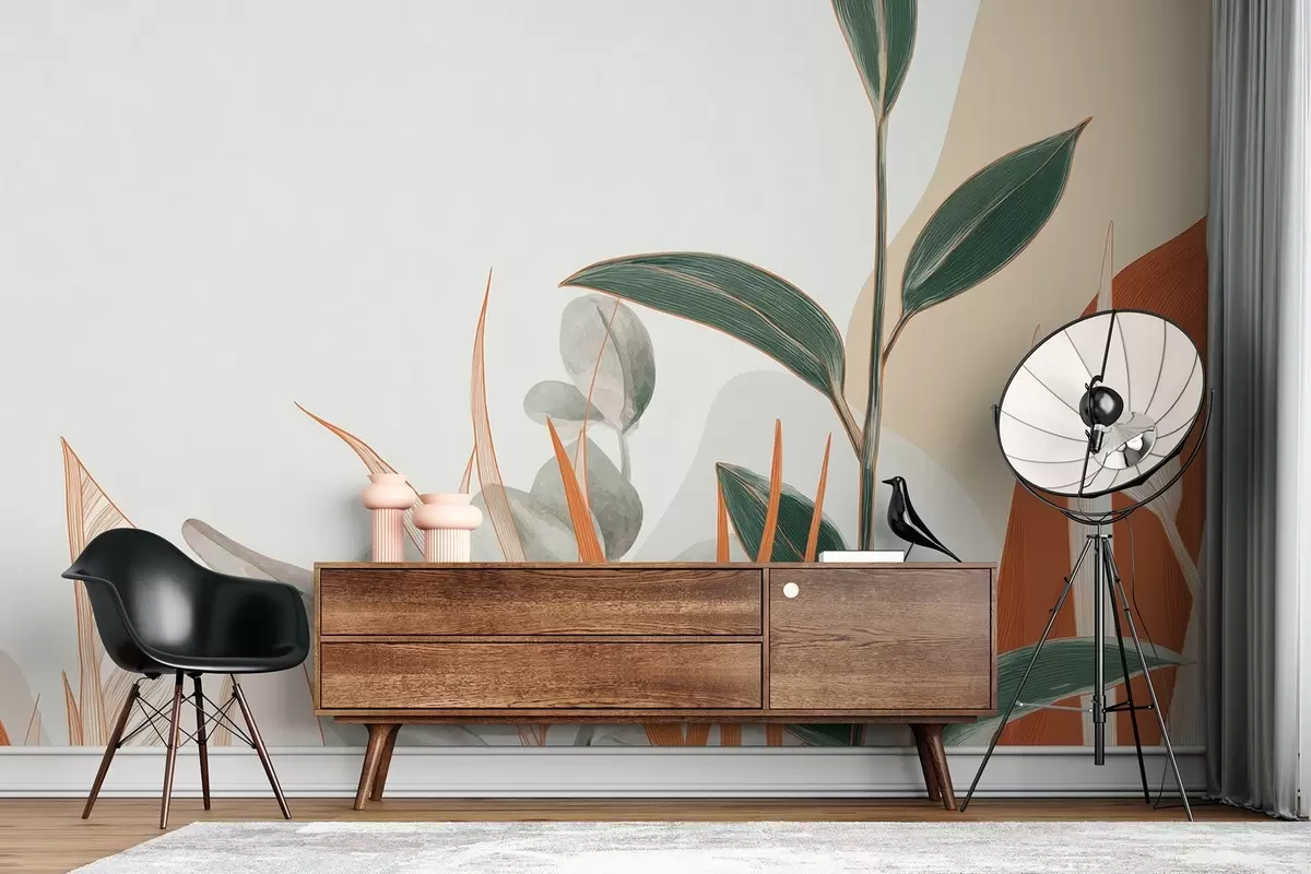Fototapety Listy v béžových a zelených tónoch Nr. w09101