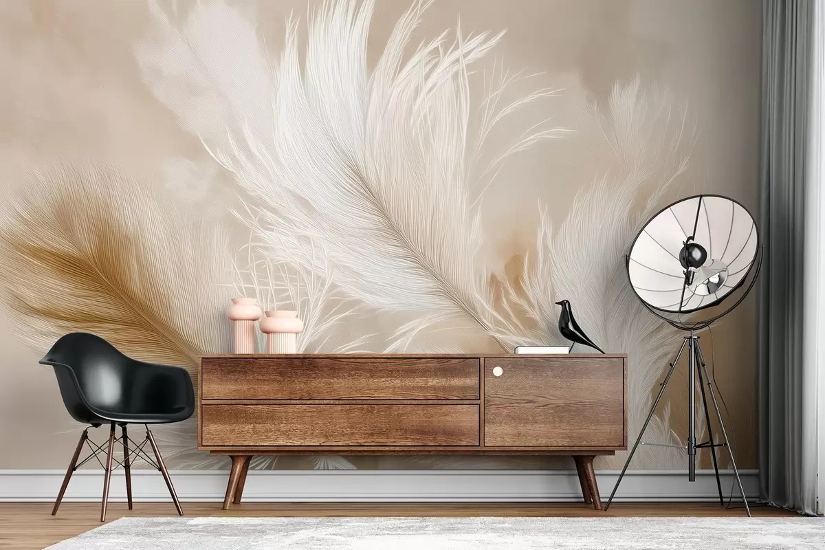 Fototapety Lietajúce vzdušné pierka na béžovom pozadí Nr. w09102