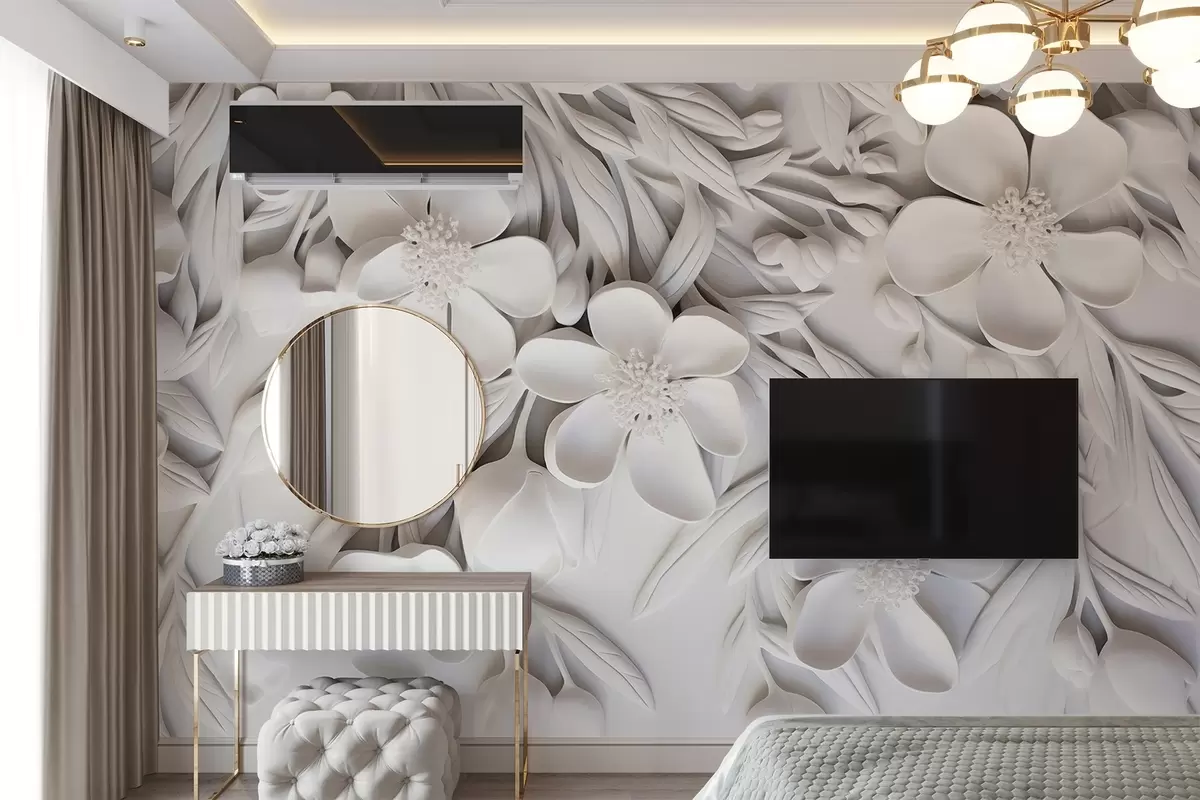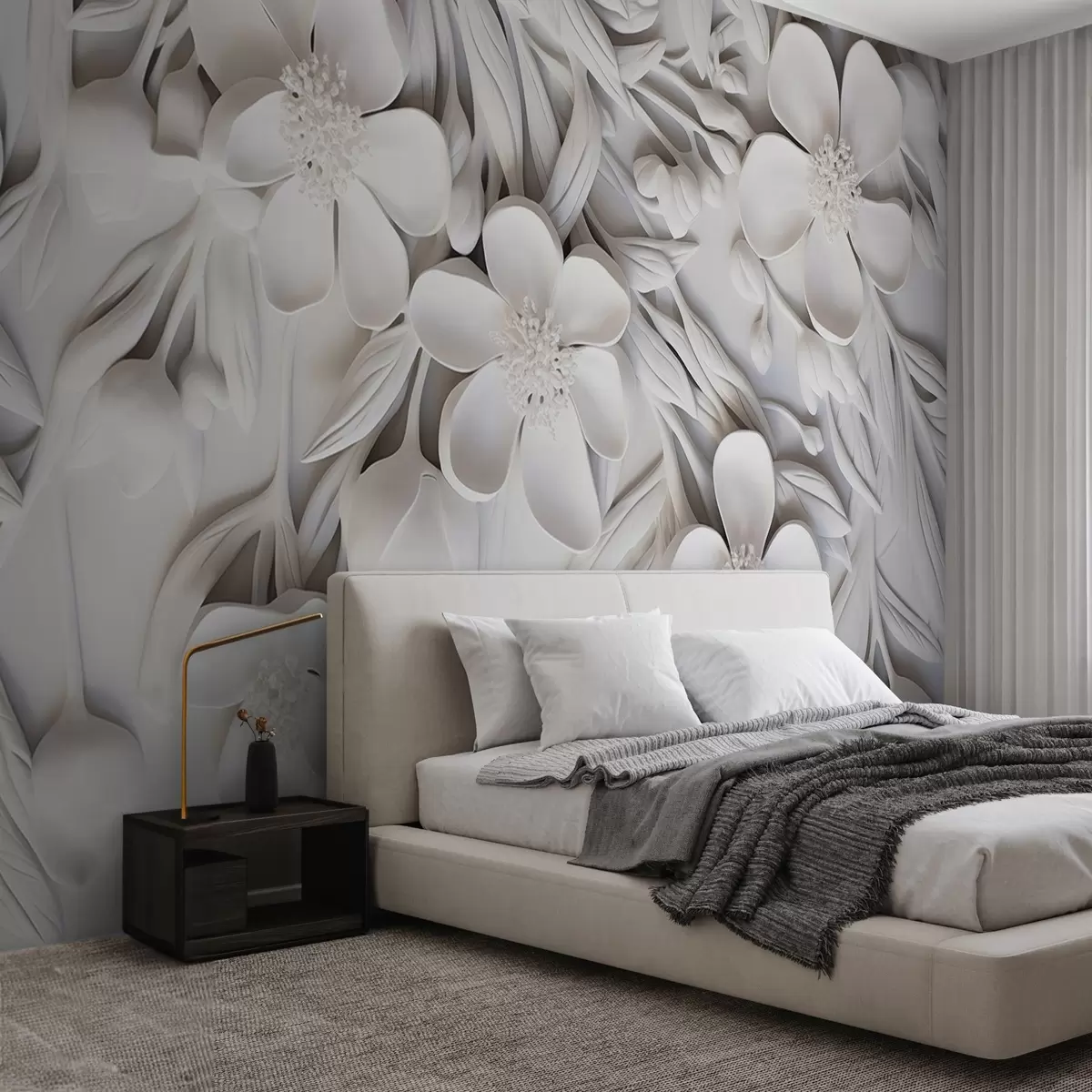 Fototapety Biele kvety a listy na bielom pozadí, kvetinový elegantný, dekoratívny dizajn, zložité detaily Nr. w09113