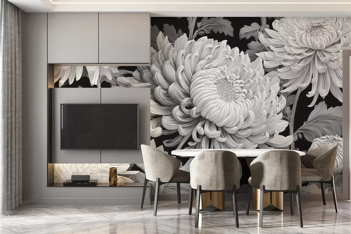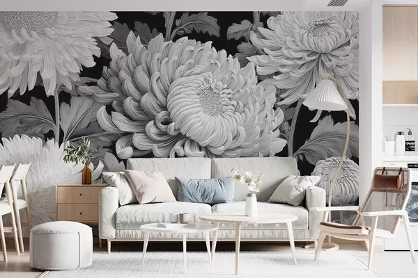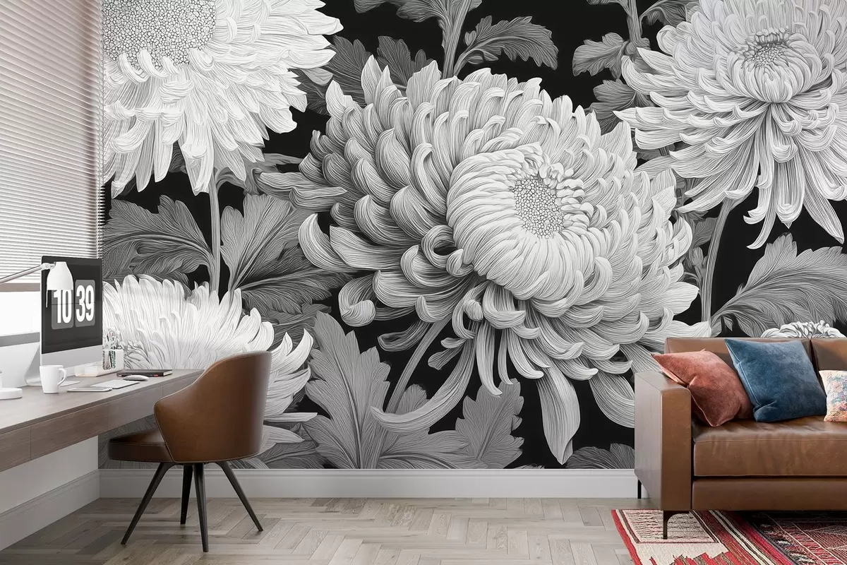 Fototapety Čiernobiele veľké orchidey s listami Nr. w09125v1