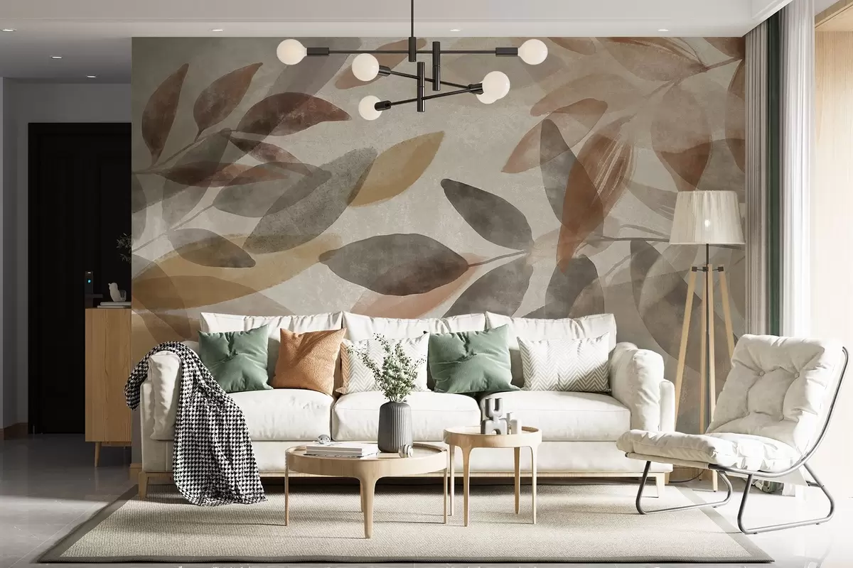 Fototapety Abstraktné štruktúrované listy v tlmených hnedých, béžových a sivých tónoch, transparentné tvary, minimalistický štýl, organické tvary Nr. w09140