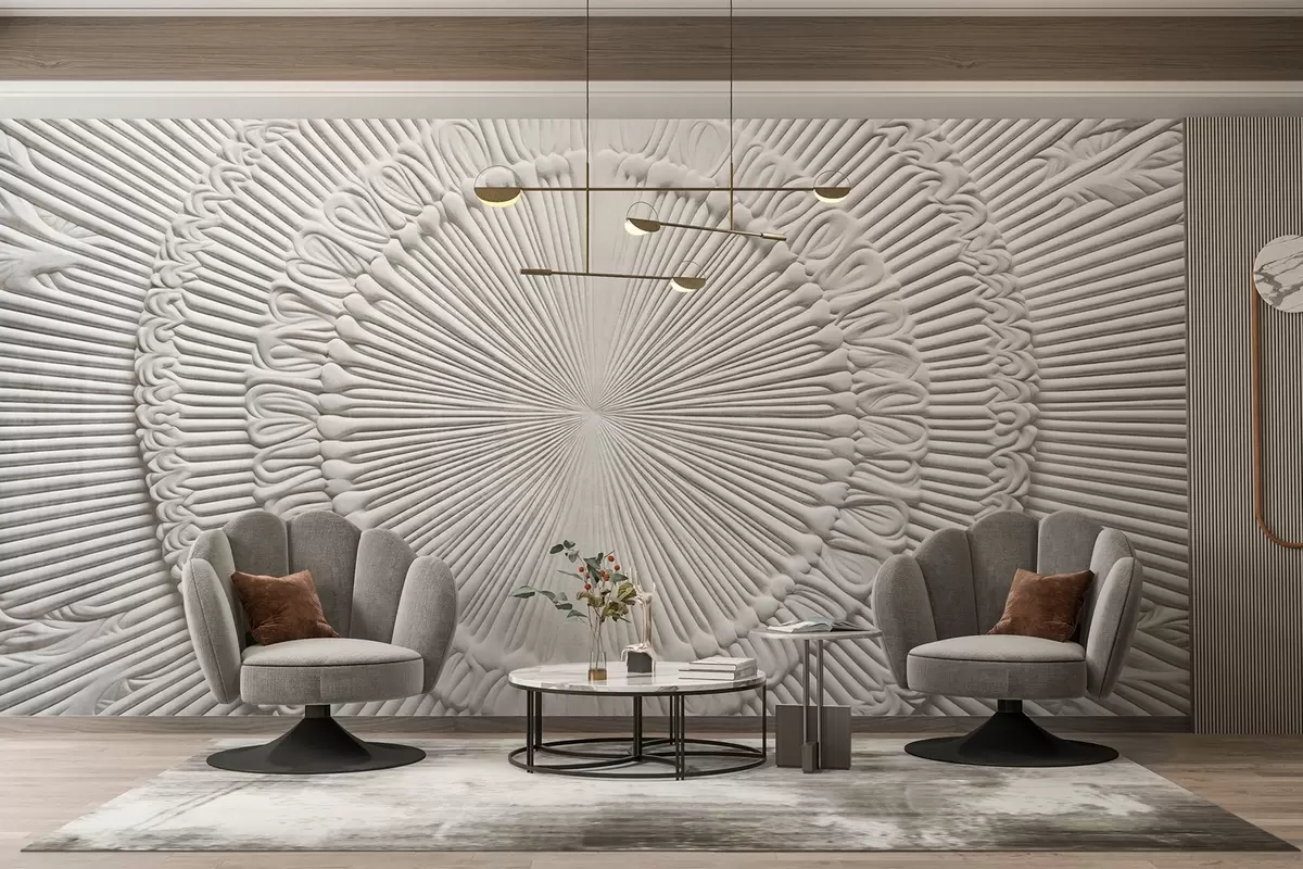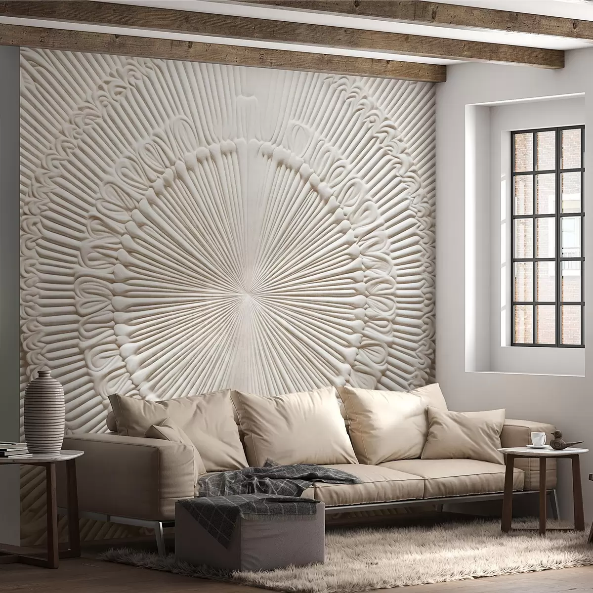 Fototapety Abstraktná textúrovaná kruhová tlač s radiálnymi líniami a dekoratívnymi prvkami, symetrický dizajn, reliéfna textúra Nr. w09154