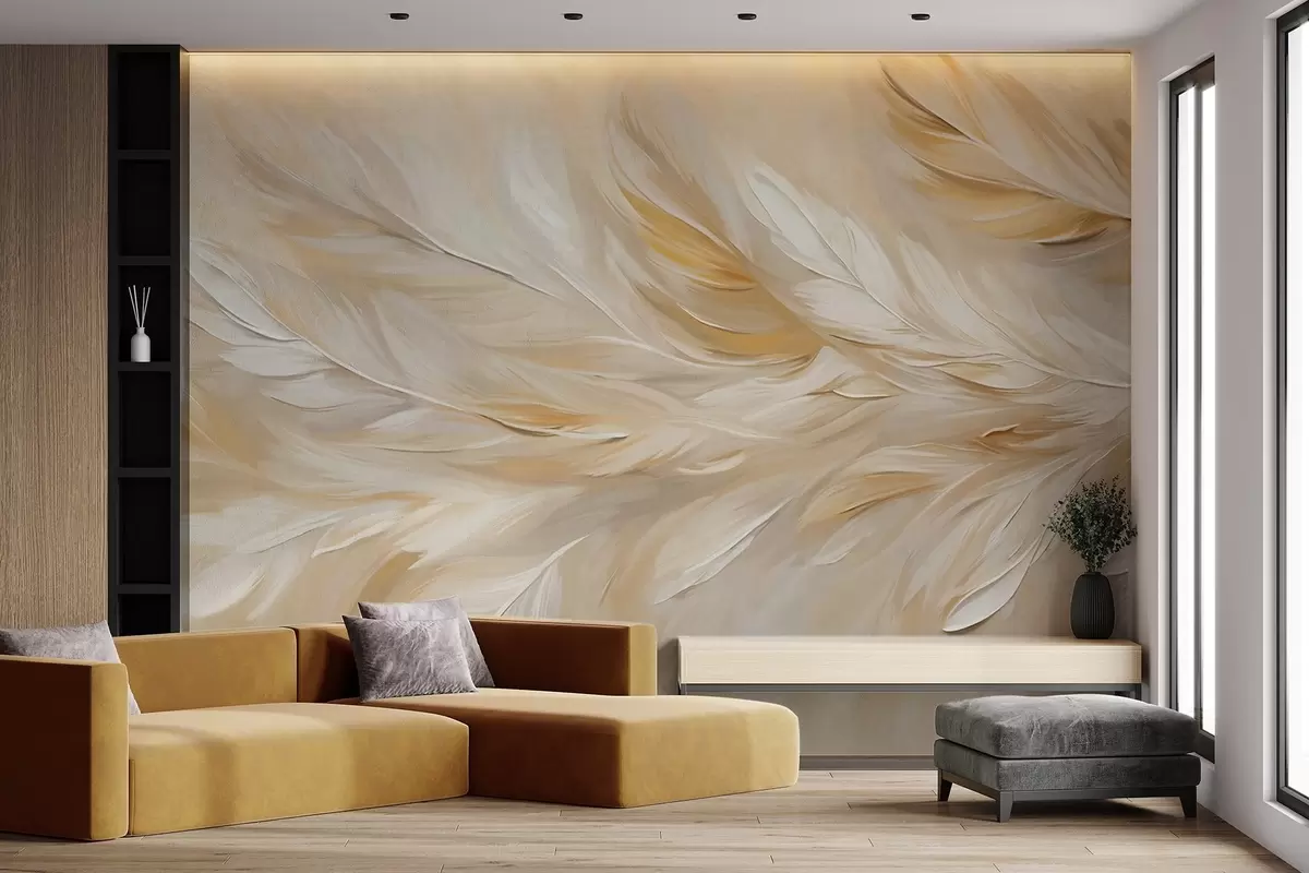 Fototapety Biele a béžové perie usporiadané do splývavej potlače, mäkká textúra, teplá paleta farieb, abstraktné pozadie Nr. w09191