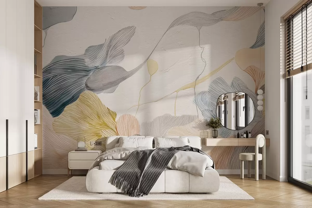 Fototapety Abstraktné grafické listy v teplých a studených pastelových tónoch Nr. w09222v1