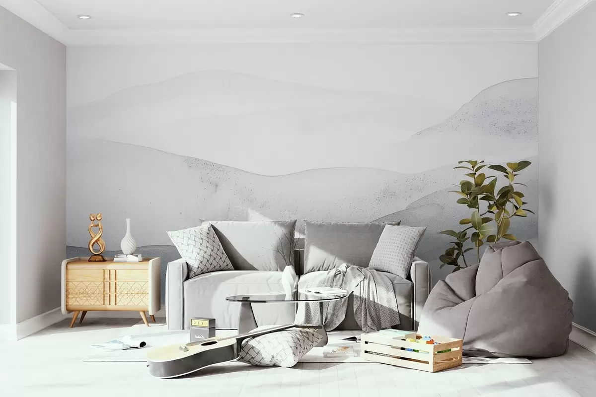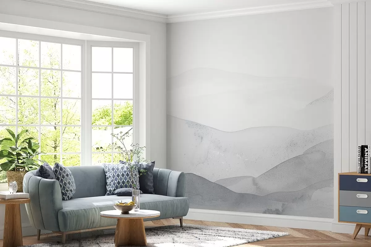 Fototapety Minimalistické hmlisté hory v jemných modrých odtieňoch Nr. w09223v2