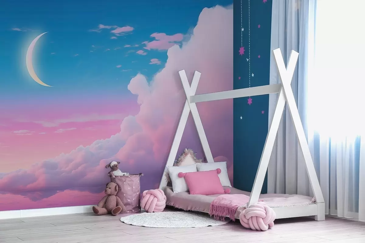 Fototapety Magický západ slnka s mrakmi a polmesiacom v ružových a modrých tónoch Nr. w09240