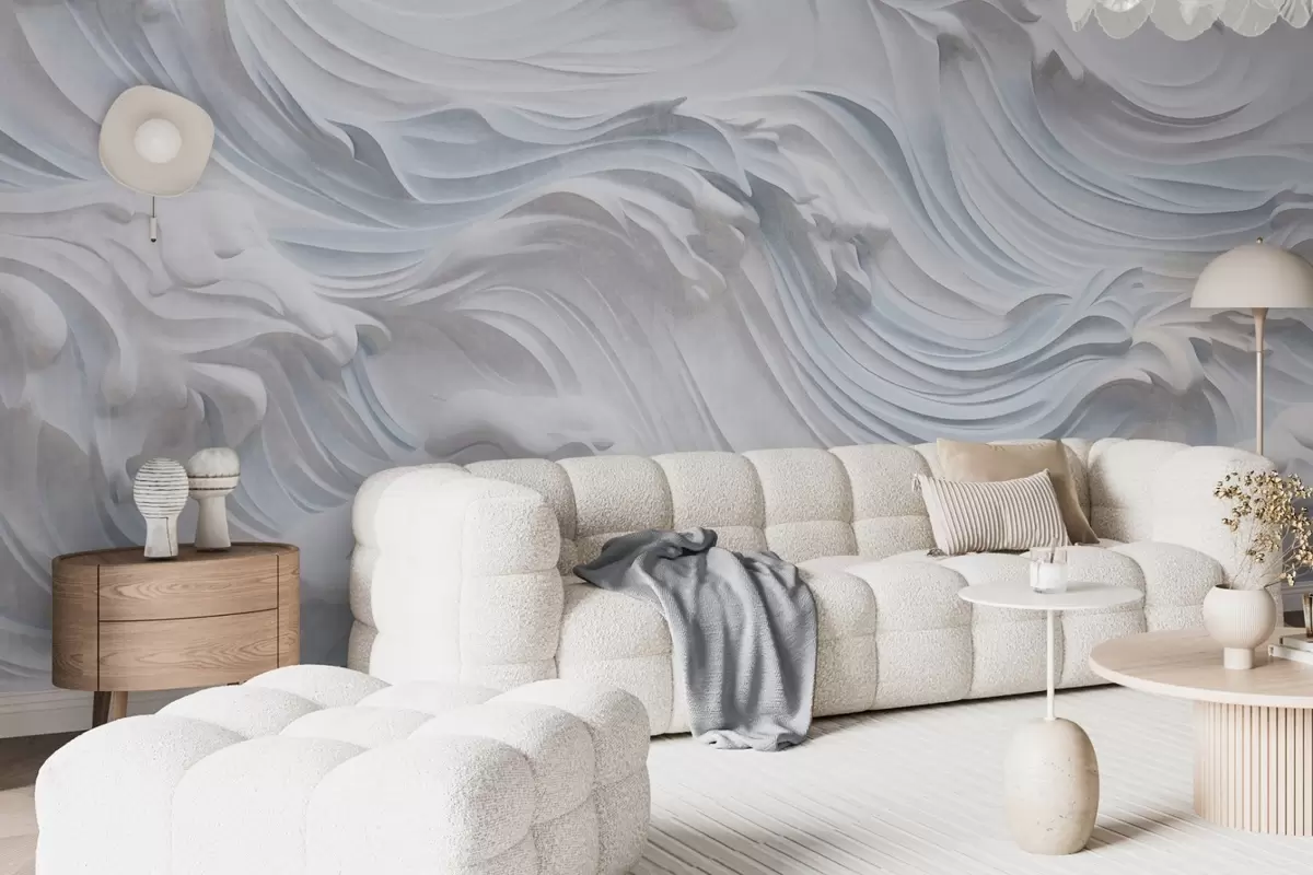 Fototapety Biele a svetlomodré textúrované abstraktné oceánske vlny s penou, tečúce zľava doprava, dynamická a textúrovaná tlač Nr. w09266