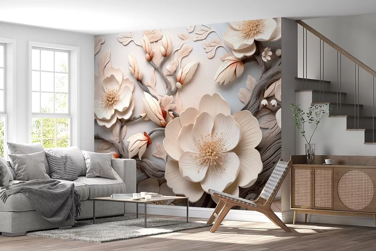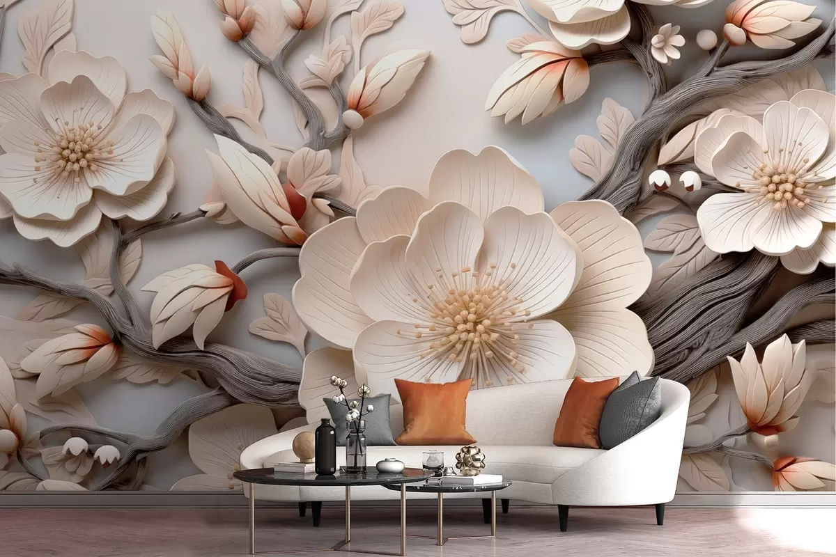 Fototapety Objemové kvety a vetvy vo svetlých tónoch Nr. w09272
