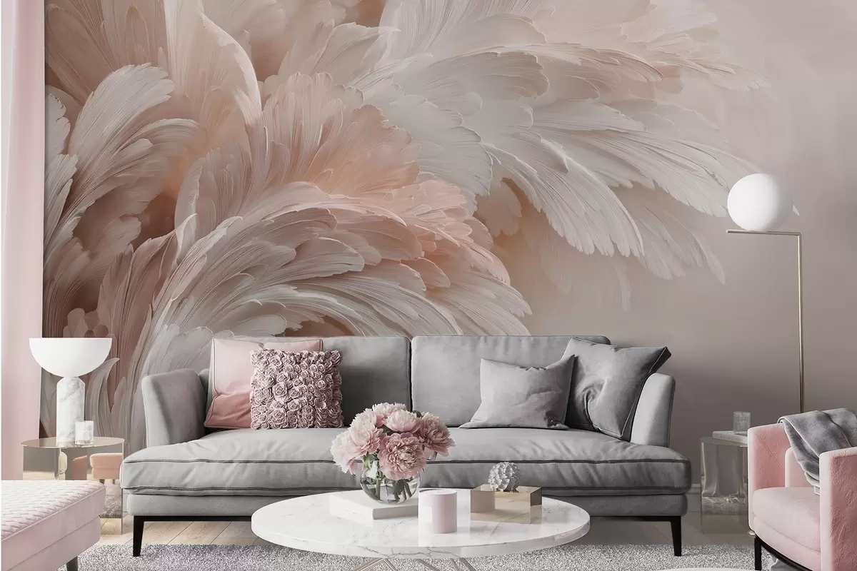 Fototapety Vzdušné pierka a okvetné lístky v krémovo ružových odtieňoch Nr. w09301