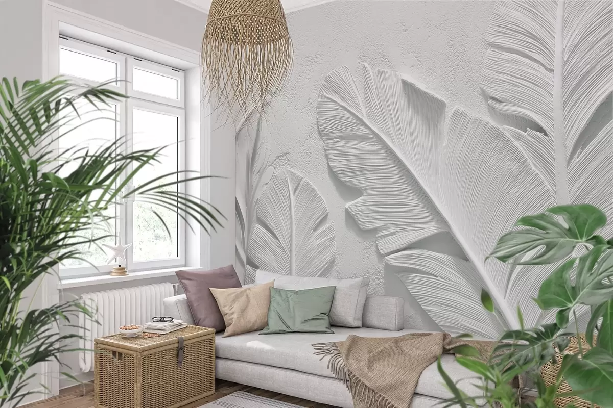Fototapety Textúrované sivé listy na pozadí s reliéfom z umelej omietky Nr. w09307