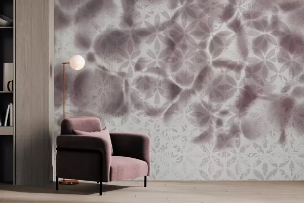 Fototapety Abstraktné textúrované umenie s bordovou kvetinovou potlačou, vyblednutým a rozmazaným efektom, ktoré vytvára jemnú a zasnenú atmosféru Nr. w09322v1