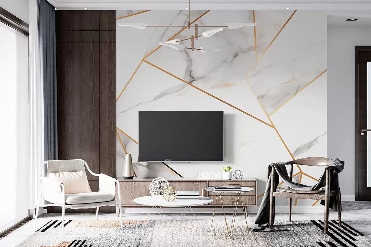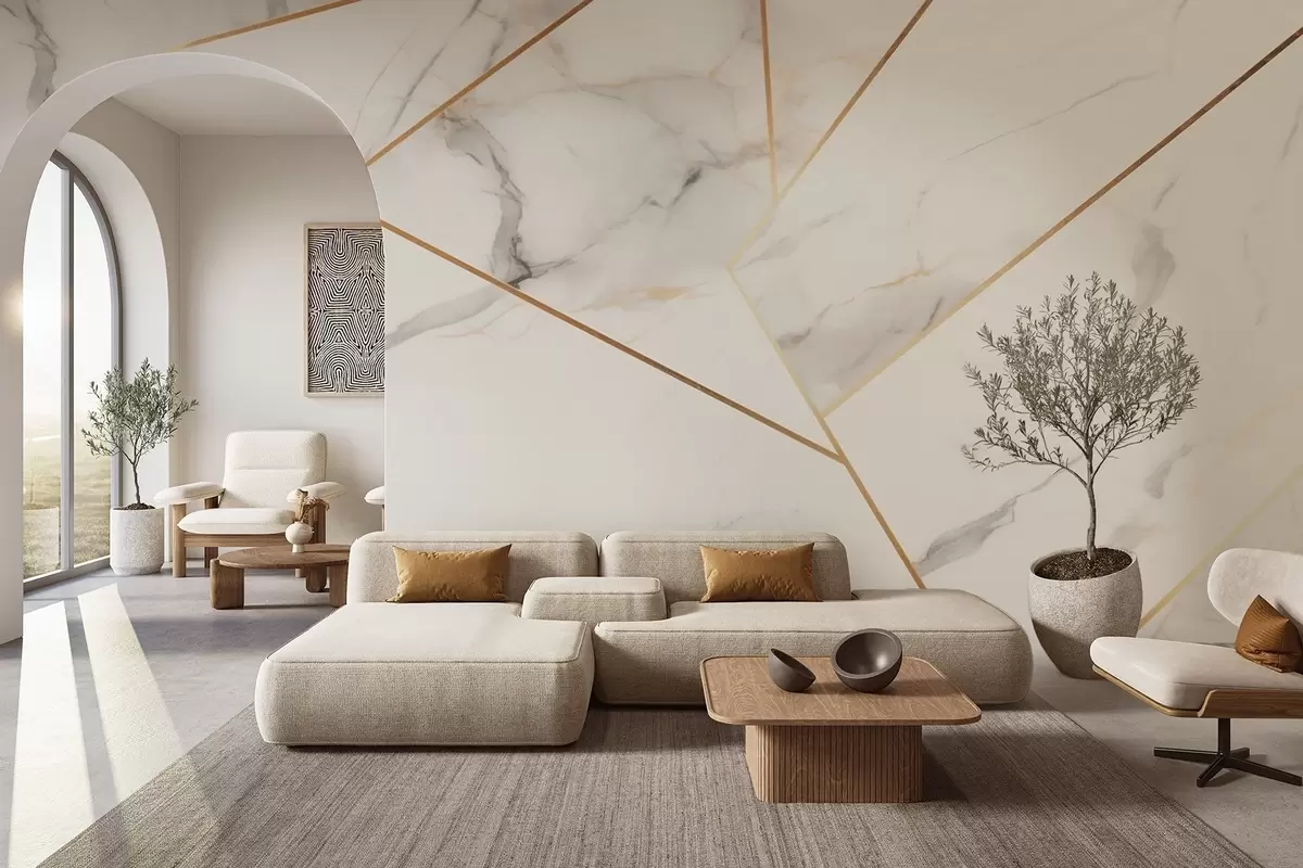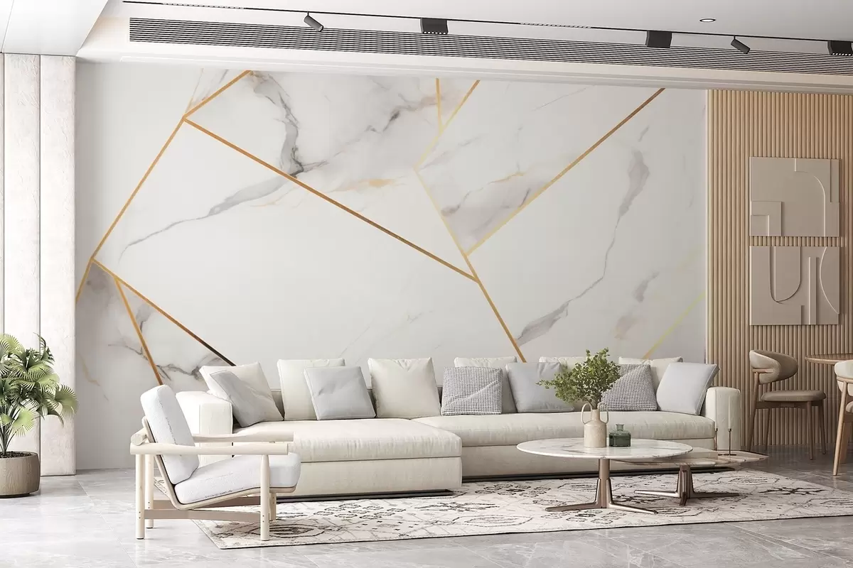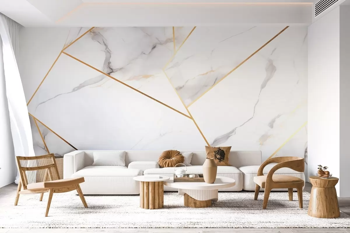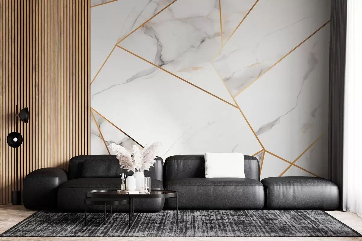 Fototapety Imitácia mramorového povrchu so žltým geometrickým vzorom Nr. w09363