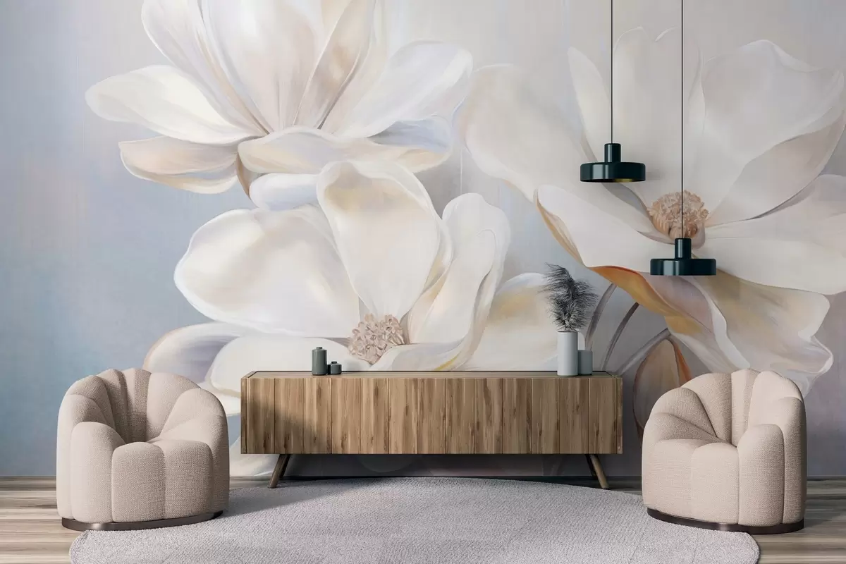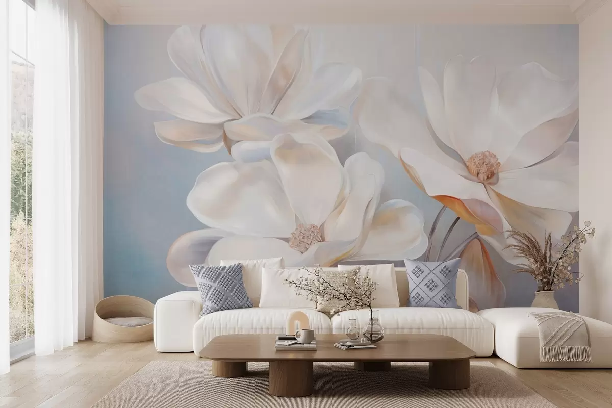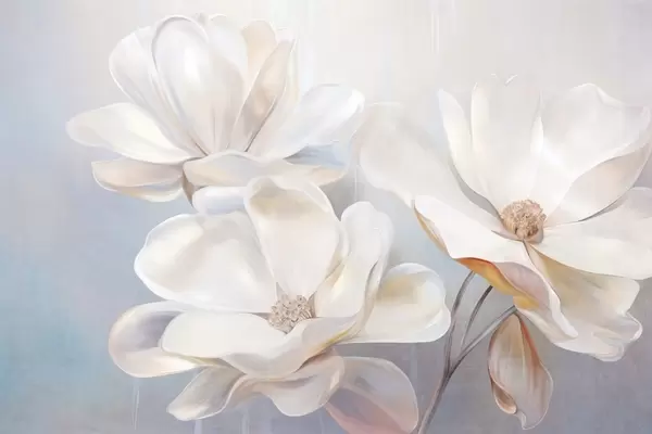 Fototapety Biele fantazijné kvety magnólie s jemnými textúrovanými okvetnými lístkami, mäkké, abstraktné pozadie Nr. w09373