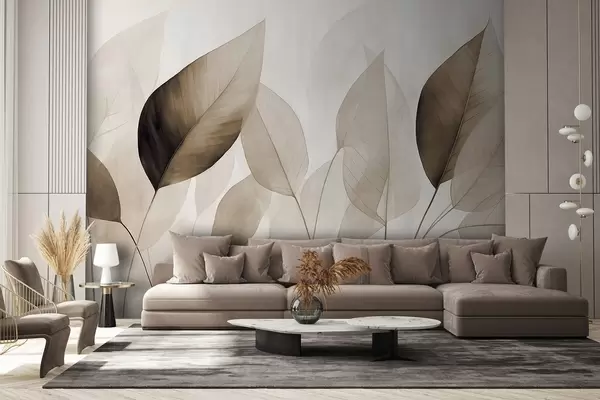 Fototapety Textúrovaná maľba imitujúca listy v odtieňoch hnedej a béžovej farby s jemnými žilkami a stonkami Nr. w09400v1