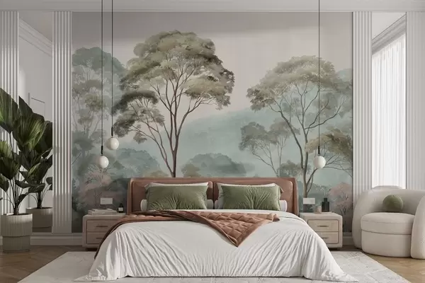 Fototapety Hmlisté ráno v lese v akvarelovom štýle Nr. w09405