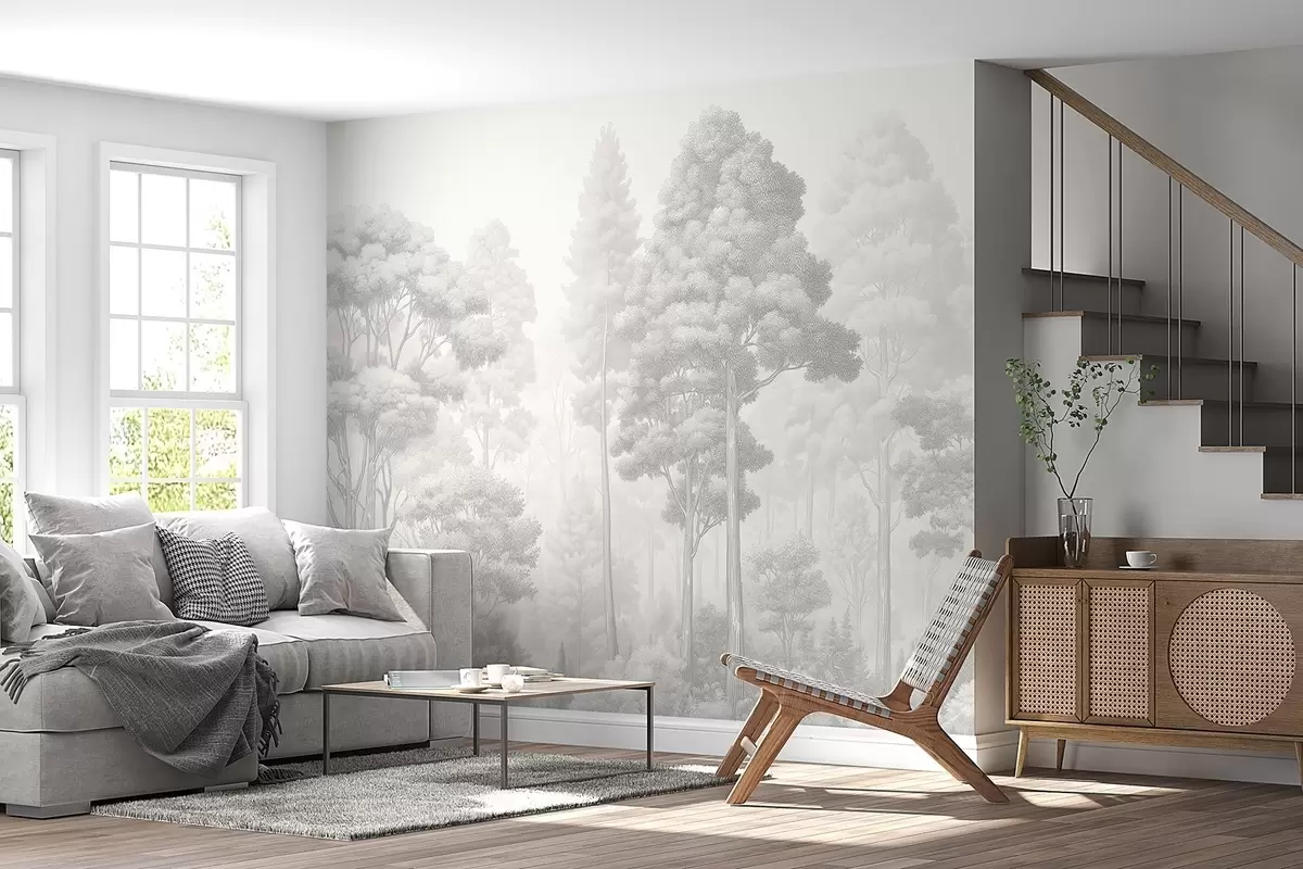 Fototapety Umelecká lesná krajina v technike čiernobieleho grafického šrafovania Nr. w09411