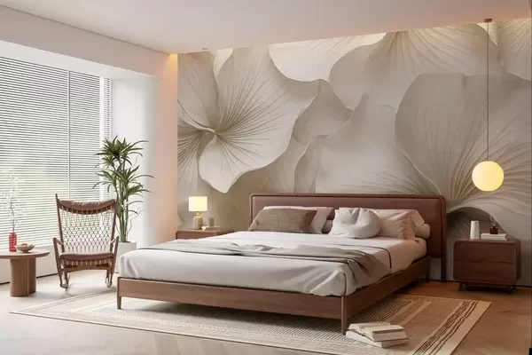 Fototapety Biele a béžové listy ginkga, jemná textúra, abstraktné kvetinové pozadie, minimalistický moderný štýl Nr. w09421v1