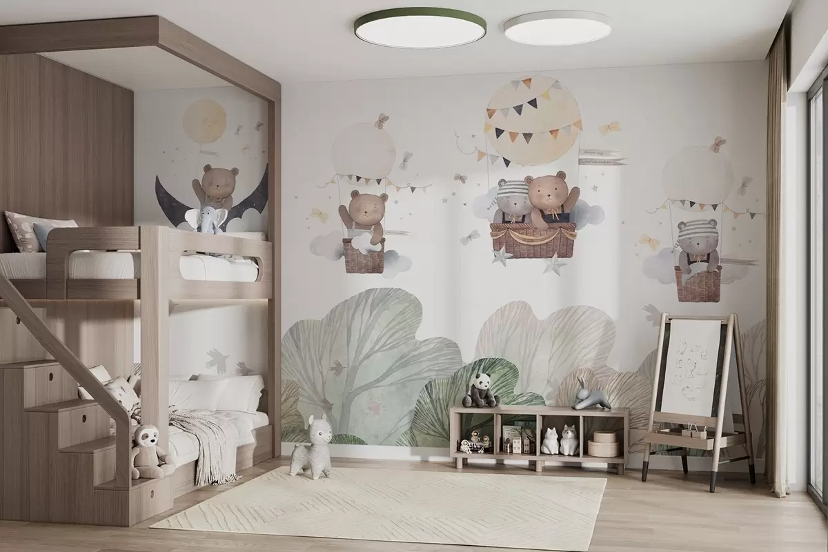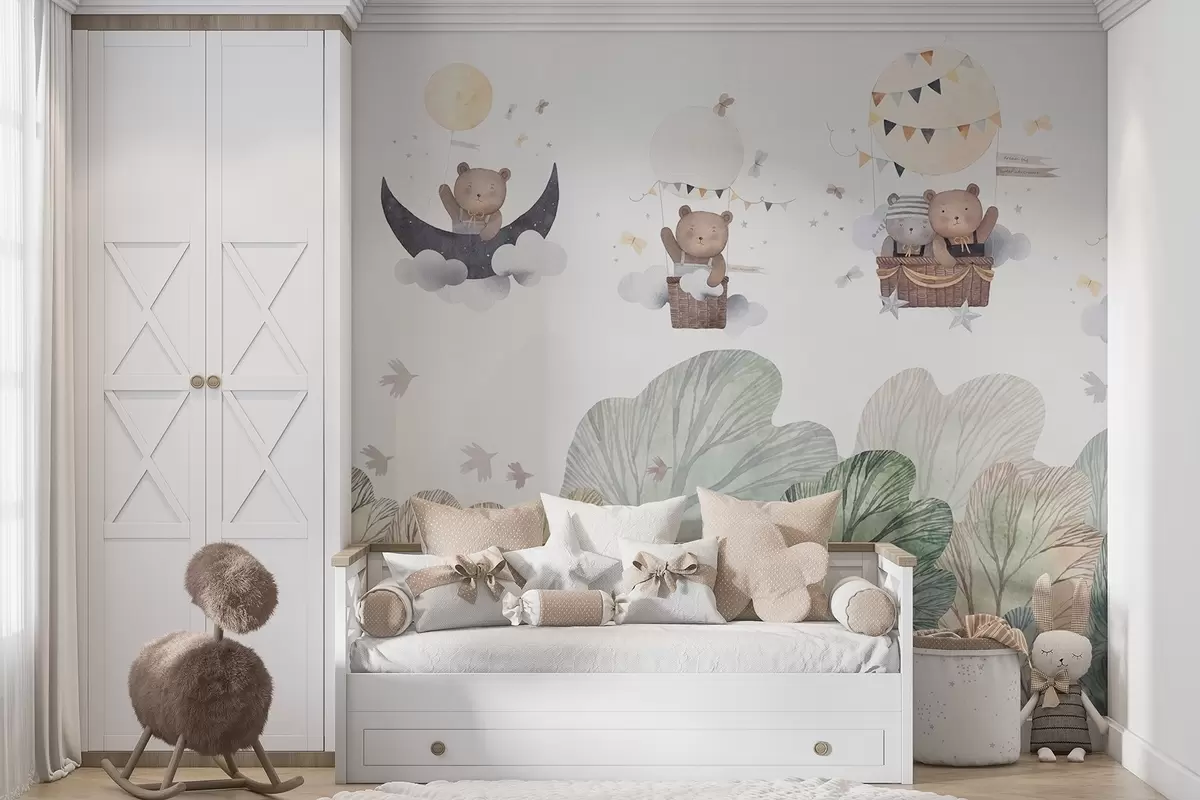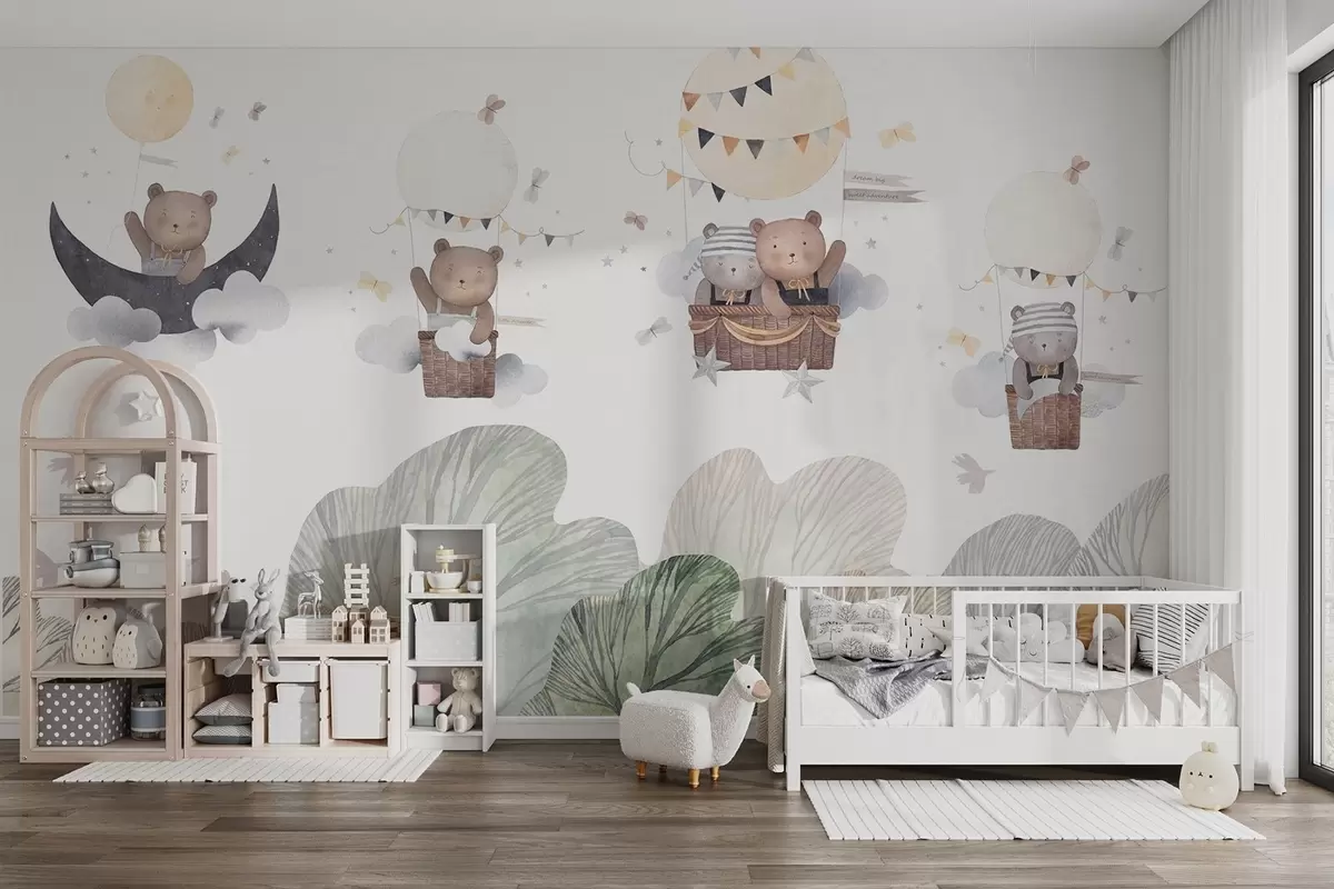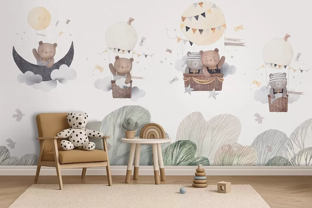 Fototapety Balóny v akvarelovom štýle s medveďmi nad lesom Nr. w09437