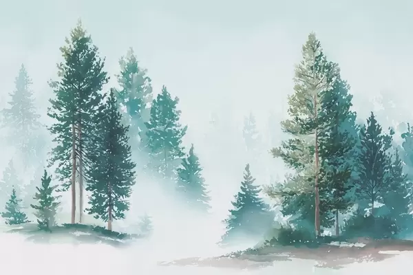 Fototapety Hmlistý borovicový les v akvarelovom štýle Nr. w09444