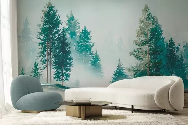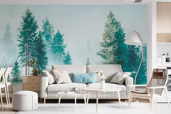 Fototapety Hmlistý borovicový les v akvarelovom štýle Nr. w09444