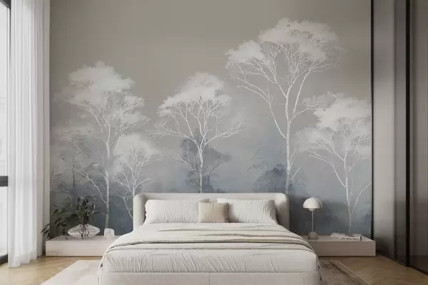Fototapety Minimalistické stromy v modro-sivej palete, v hmle Nr. w09448